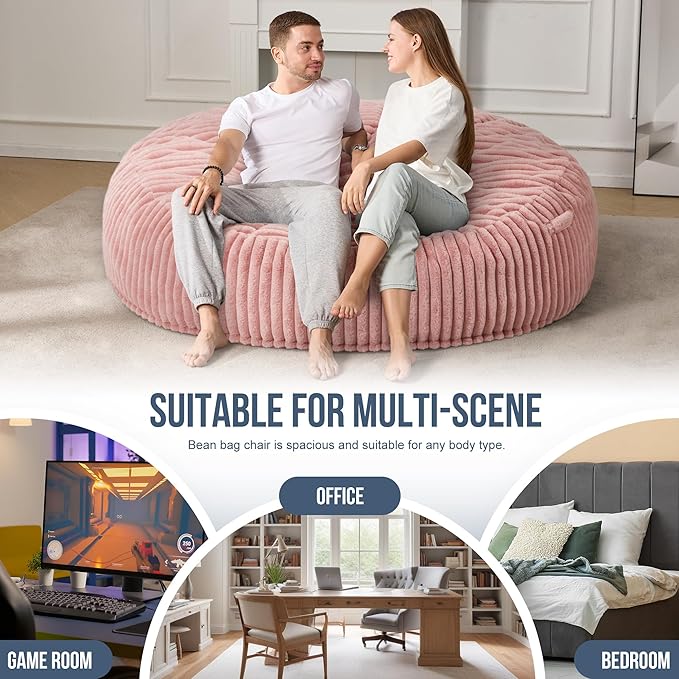 Hobestluk 6ft Bean Bag Chairs for Adults Large Beanbag Chair with Stripe Plush Cover Big Bean Bag Chair for Living Room Bedroom Dorm Office - Pink (70" x 70" x 15")