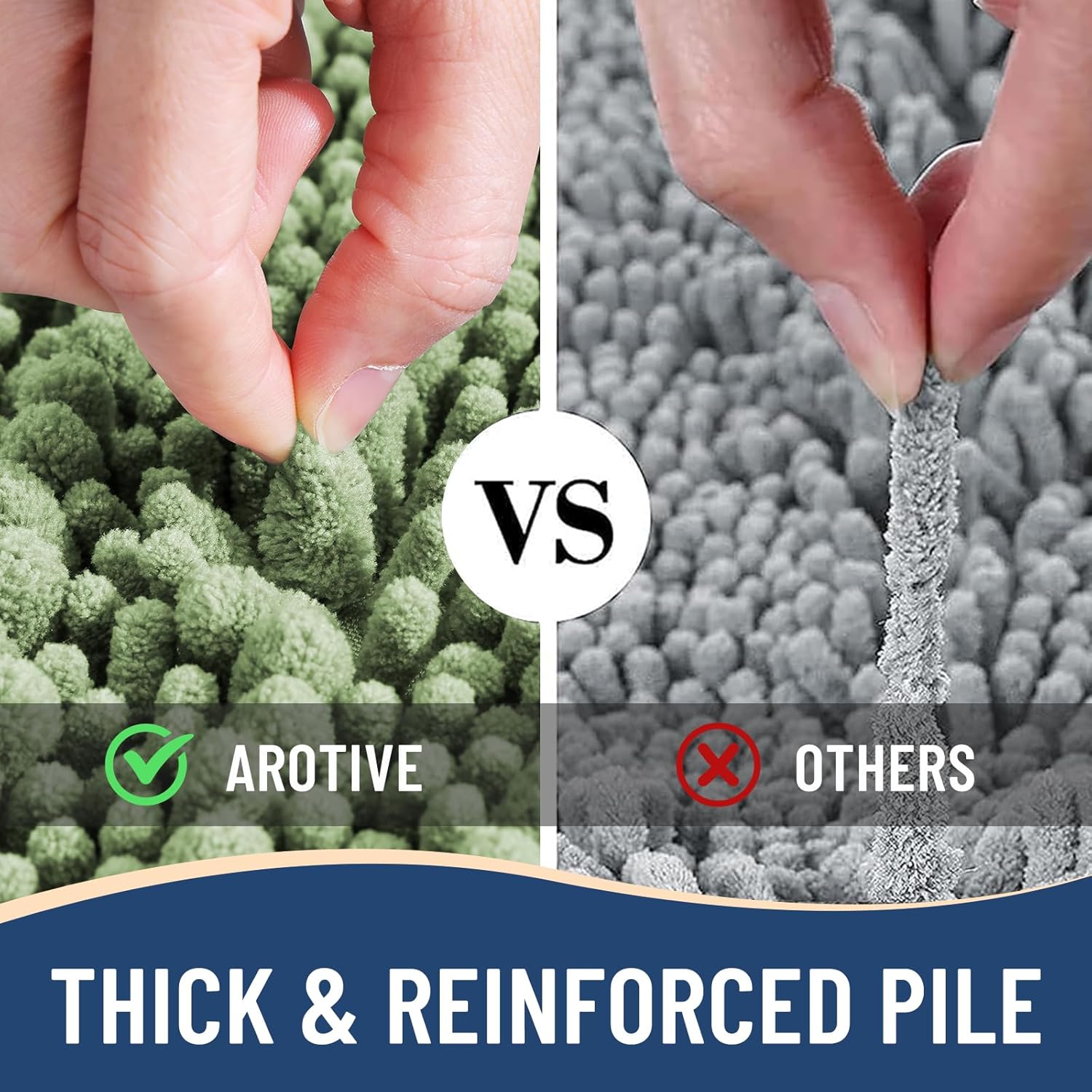 Arotive Luxury Chenille Bathroom Rug Mat, Extra Soft Thick Absorbent Shaggy Bath Rugs, Non-Slip Machine Wash Dry, Plush Bath Mats for Bathroom, Shower and Tub, 40x24, Sage Green