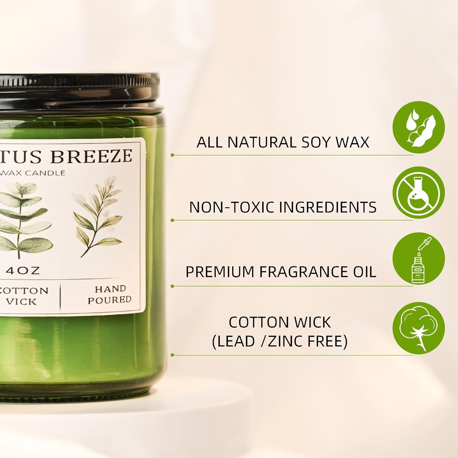 Eucalyptus & Mint Candles for Home Scented, 20 Hours Burn Soy Candle Gift for Women Stress Relief, Meditation, Yoga, Relaxing, Natural Soy Wax for Men and Women, 4oz