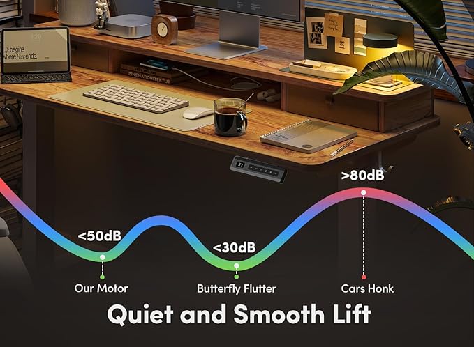 - Electric Height Adjustable: FEZIBO standing desk has reliable motor that could support height adjustment between 27.36''-46.06'' with low noise(under 50 dB) while running