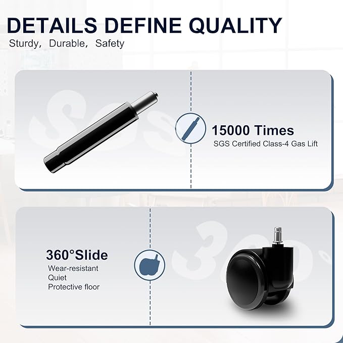 - 【High quality and easy installation】: Our comfy chair have passed the US BIFMA test, and gas lift that has been certified by SGS, ensuring they are safe and strong to use. Each office chair comes with a detailed manual, so you can easily understand the installation process. It will only take about 10 minutes to install.