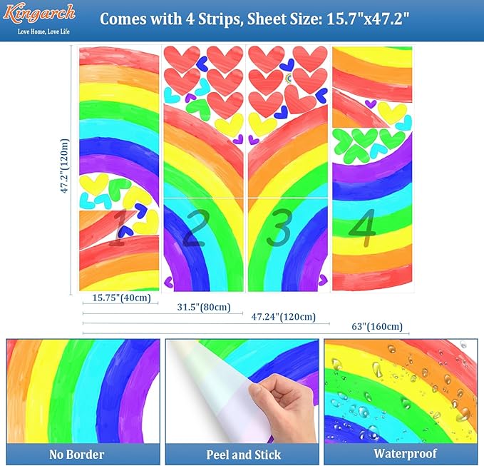 - [Upgraded Version Kids Stickers]: Our nursery decor has no white or transparent border around the different color strips,which can match any color of walls. The others' have white between the rainbow colors, only fit for white surface.