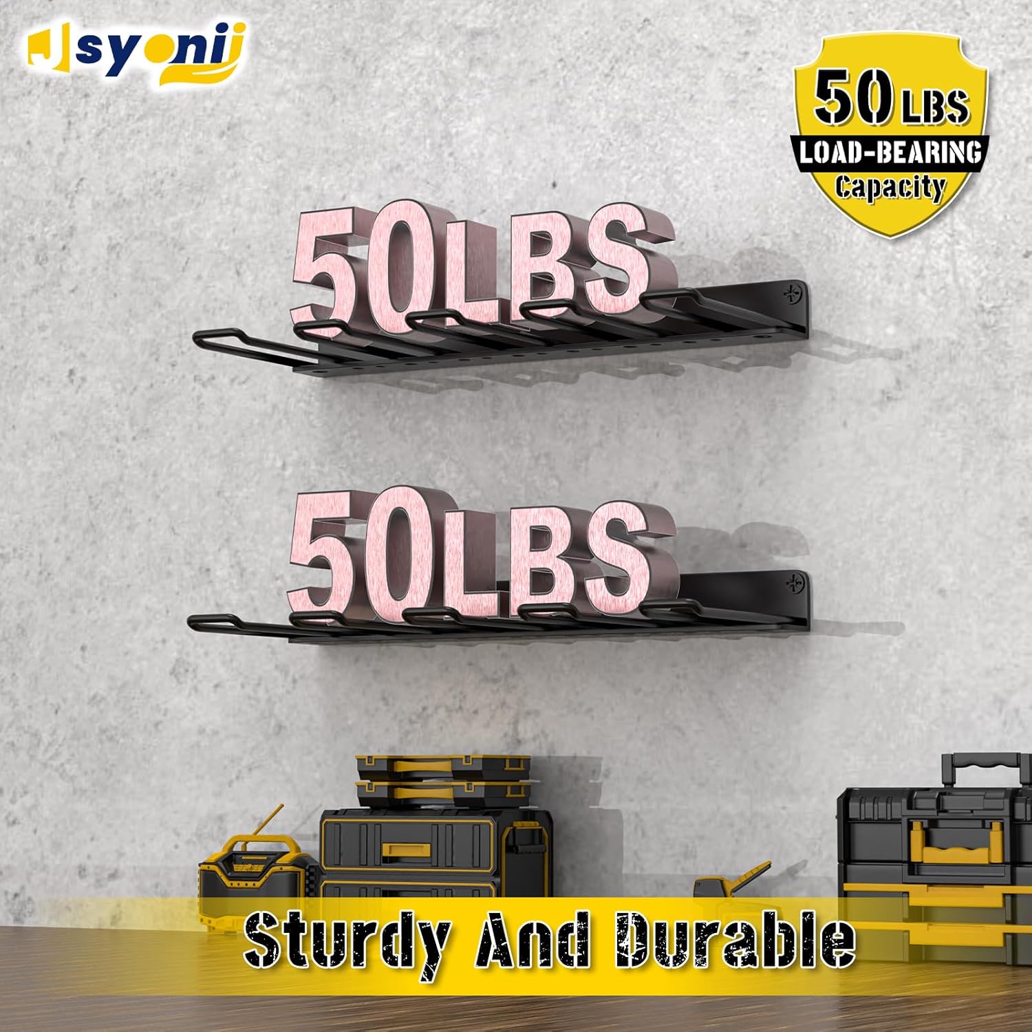 - Perfect Help for Garage:Each hook has a curved end to prevent the drill from falling. The garage organizer and storage rack allows you to keep your drill and battery charger neatly organized for garages, homes, workshops, sheds, backyard stores and more