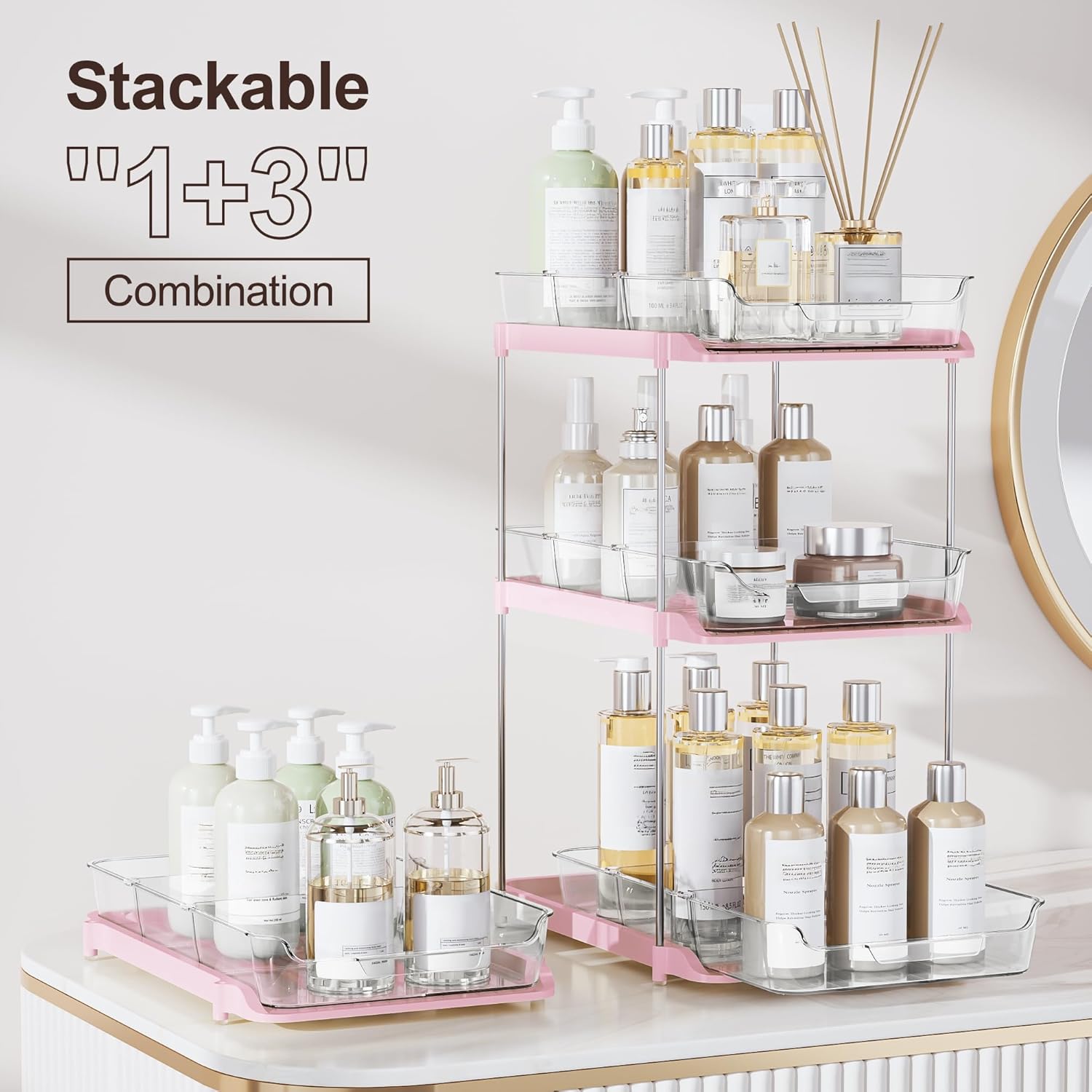 - Anti-slip Durable and Convenient: We provide non-slip silicone stoppers at every base to prevent the bathroom countertop organizer from moving around, even when pulling out a drawer. The 8 support rods are made of rust-proof and durable aluminum alloy for long-lasting use. Assembly is easy - simply connect the bottom base and upper drawers with the 4 rods