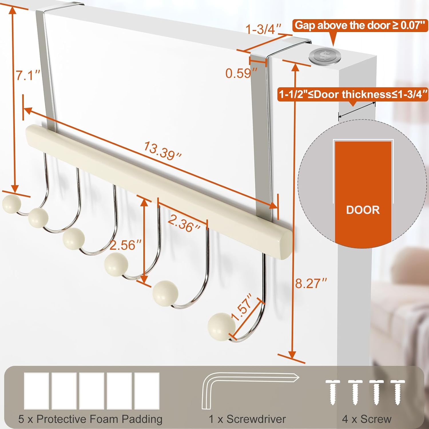 - Easy to Reach: Extended hangers allow for a usage length of 7.1 inches for the over the door hooks, making it easier to reach clothes. Before ordering please confirm that the gap above the door is greater than the thickness of a coin(Quarter ), and the thickness of the door is between 1-1/2" to 1-3/4"