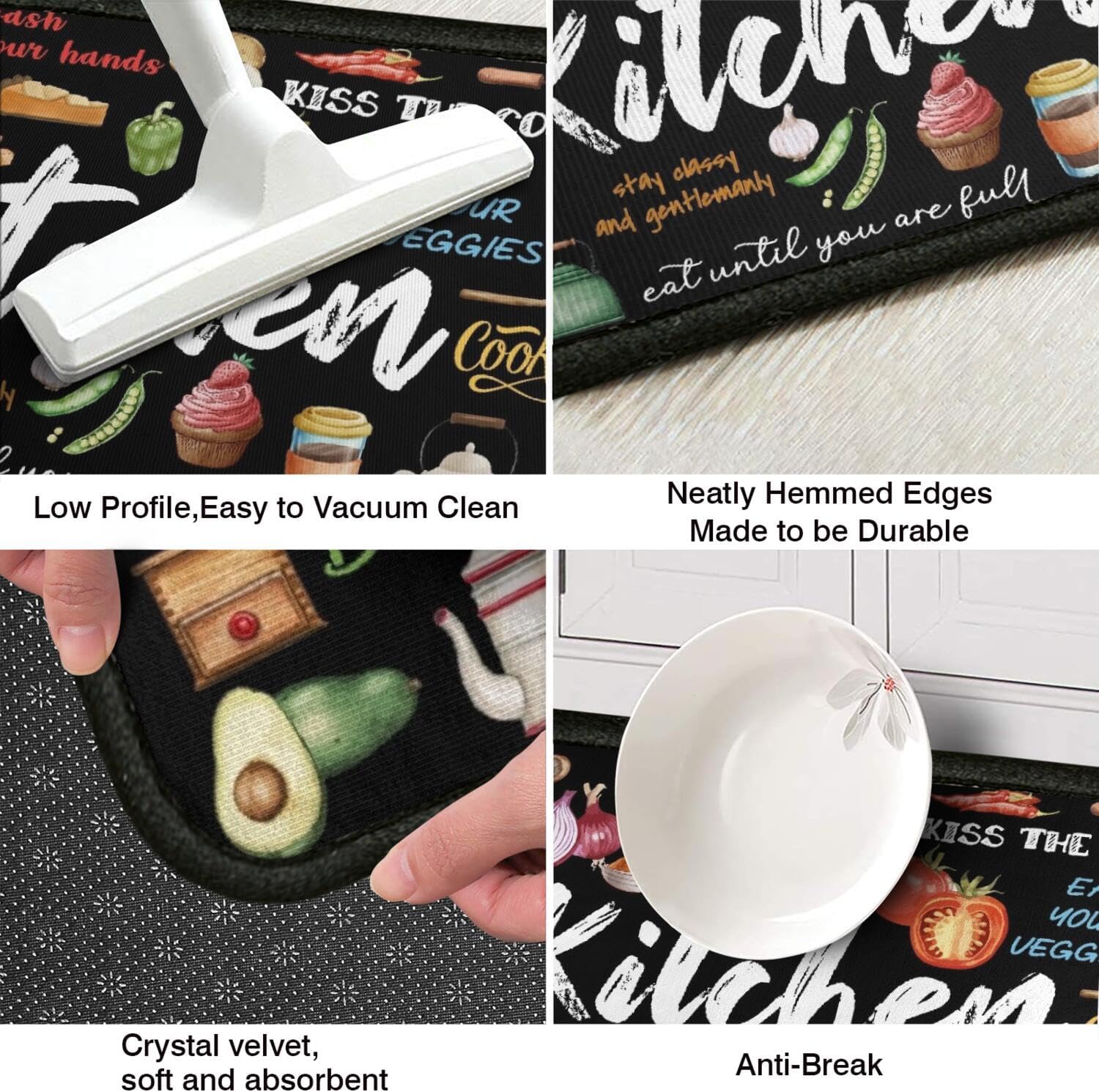 Kitchen Rugs Kitchen Decor Rugs Set Kitchen Rules Theme Non Skid 2 Piece Kitchen Mats for Floor Washable Absorbent Microfiber Kitchens Accessories Decoration Floor Mats 17"x47"+17"x30"