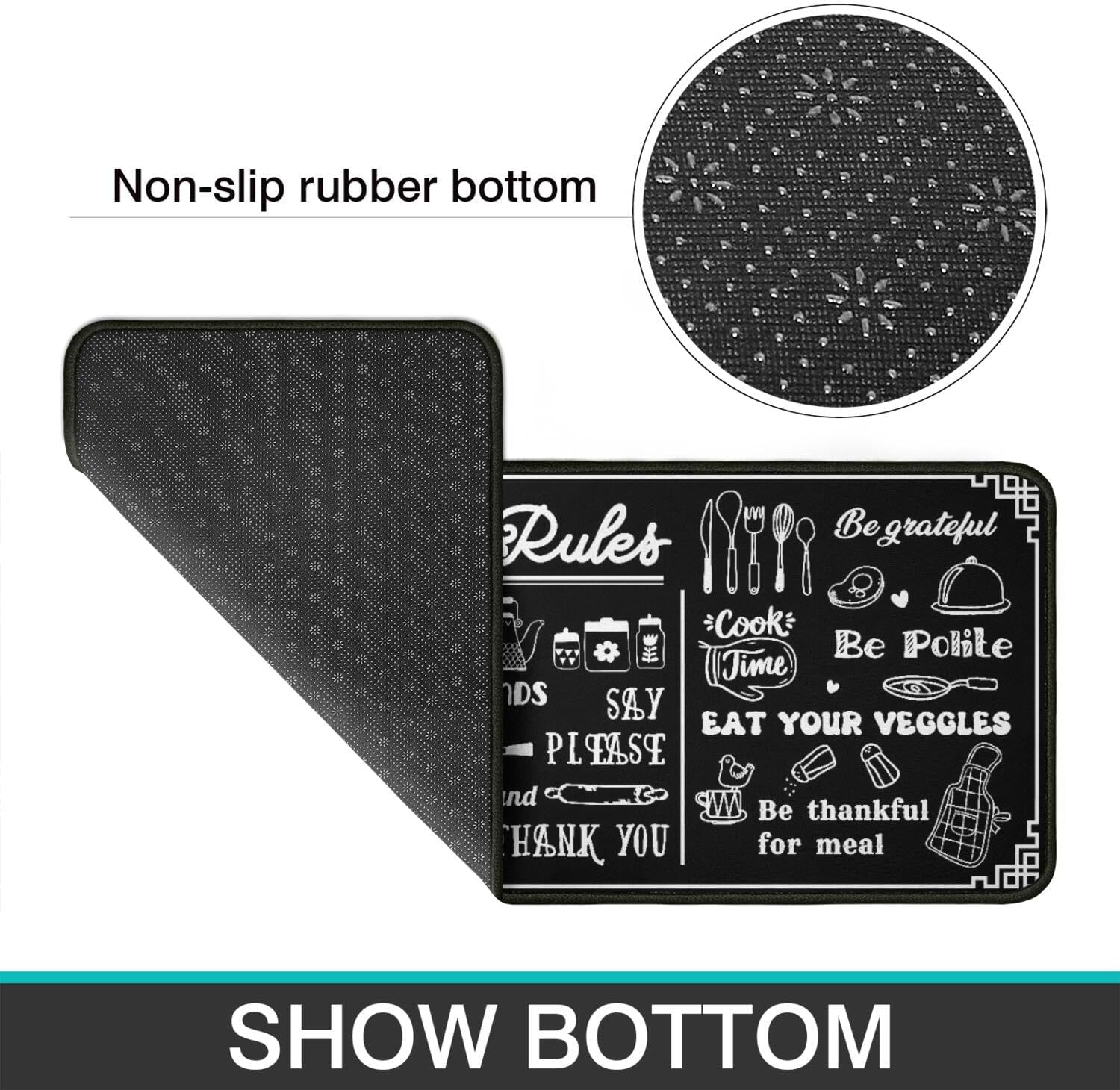 - Comfortable Mats: Kitchen Rules rugs absorbent kitchen mat uses high-quality non-slip rubber dot backing and friction surface, The purpose of this design is to improve friction and safety.
