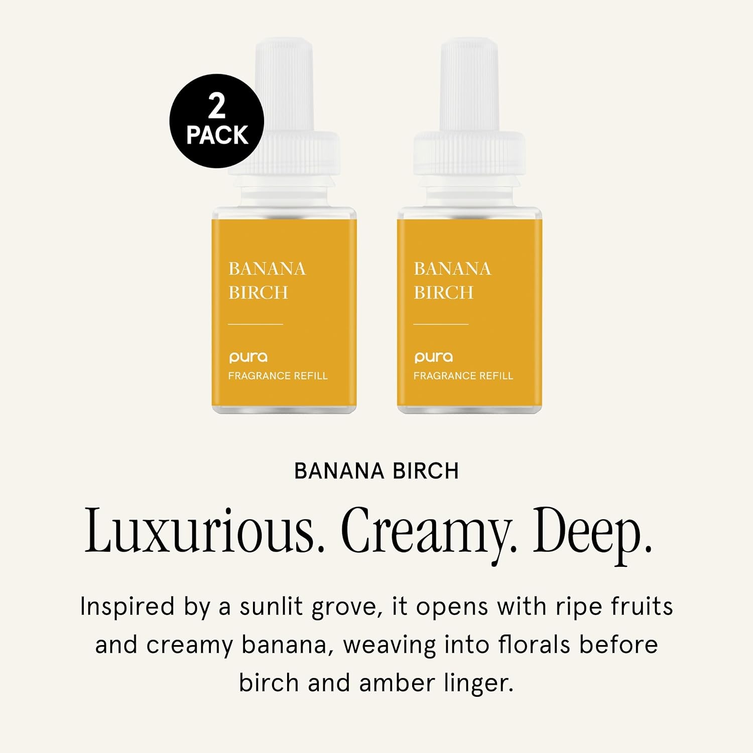 PuraHome Scent Refill - Smart Home Air Diffuser - Up to 120-Hours of Luxury Fragrance per Refill - Home Essential - Clean & Safe Diffuser Fragrance - 2 Pack, Banana Birch
