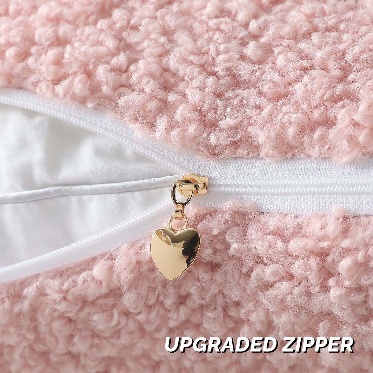FUTEI Pink Throw Pillow Covers 20x20 Inch Set of 2,Furry Faux Fur Teddy Boucle Textured Cushion Covers,Soft Fluffy Decorative Pillow Case,Home Decor for Couch Bed Living Room Office Car