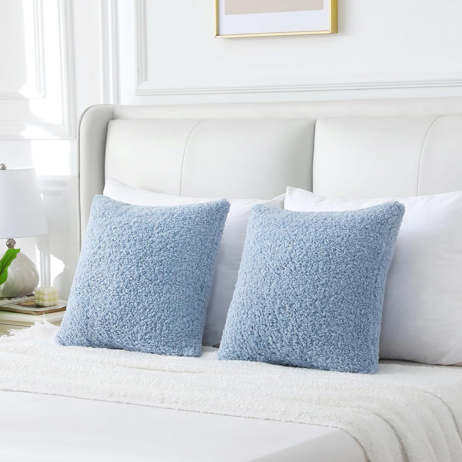 FUTEI Light Blue Throw Pillow Covers 18x18 Inch Set of 2,Furry Faux Fur Teddy Boucle Textured Cushion Covers,Soft Fluffy Decorative Pillow Case,Home Decor for Couch Bed Living Room Office Car