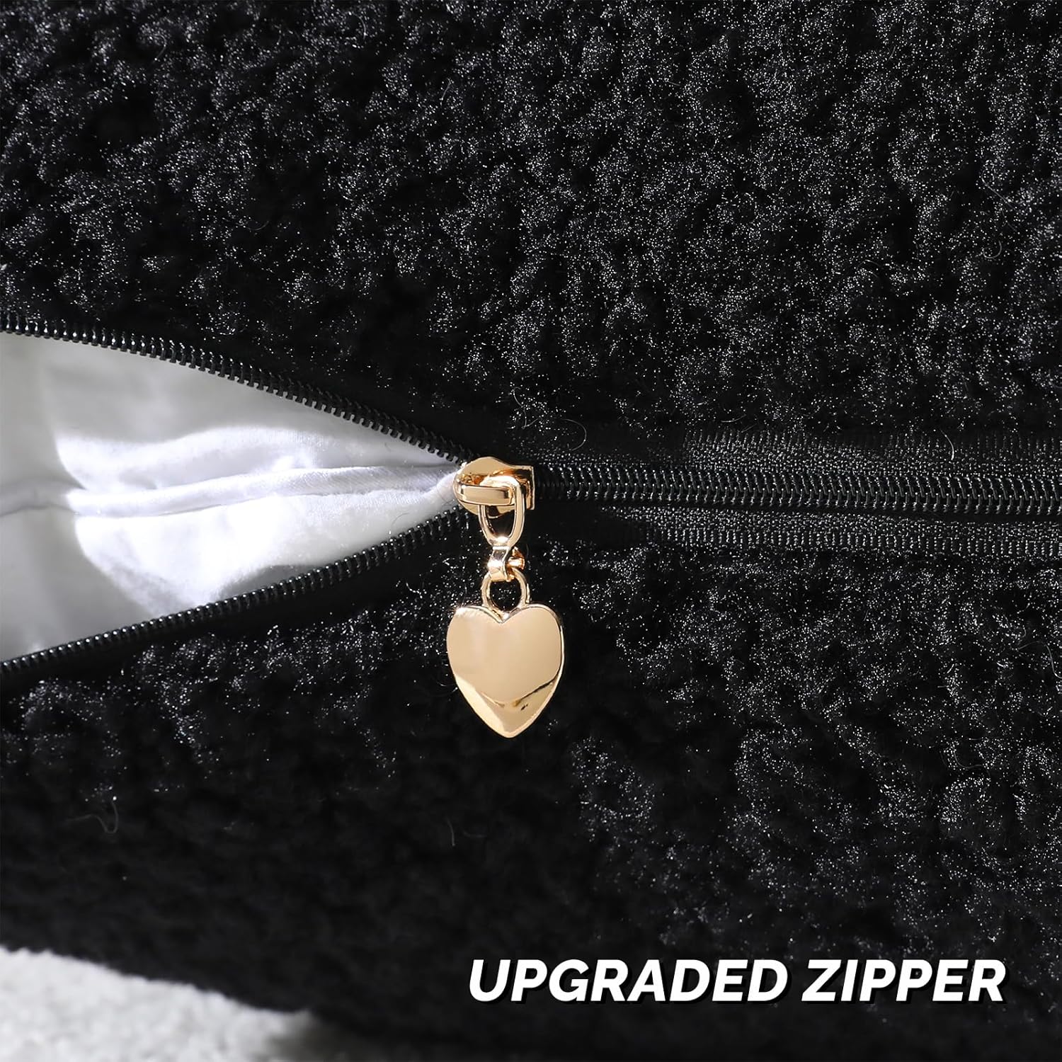 FUTEI Black Throw Pillow Covers 16x16 Inch Set of 2,Furry Faux Fur Teddy Boucle Textured Cushion Covers,Soft Fluffy Decorative Pillow Case,Home Decor for Couch Bed Living Room Office Car