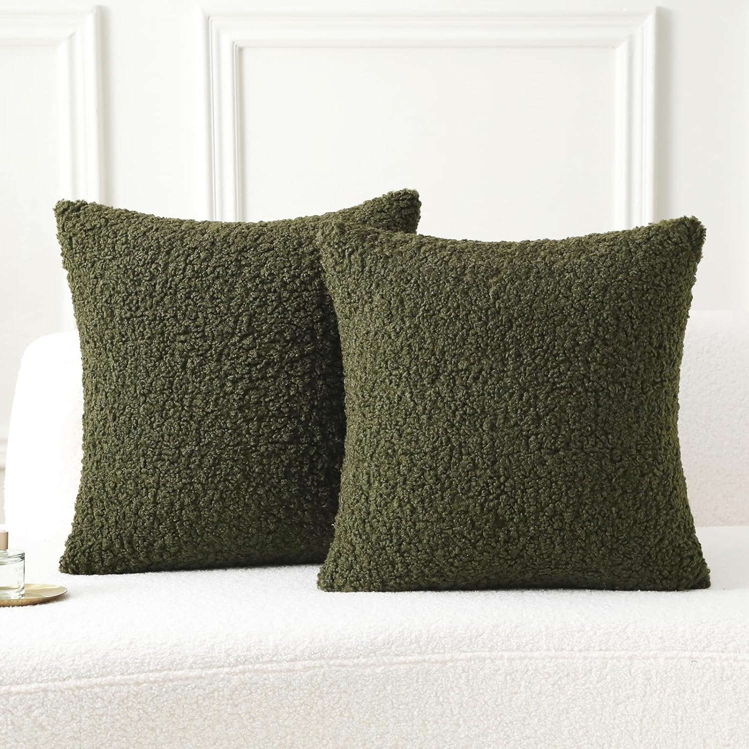 FUTEI Olive Green Throw Pillow Covers 22x22 Inch Set of 2,Furry Faux Fur Teddy Boucle Textured Cushion Covers,Soft Fluffy Decorative Pillow Case,Home Decor for Couch Bed Living Room Office Car