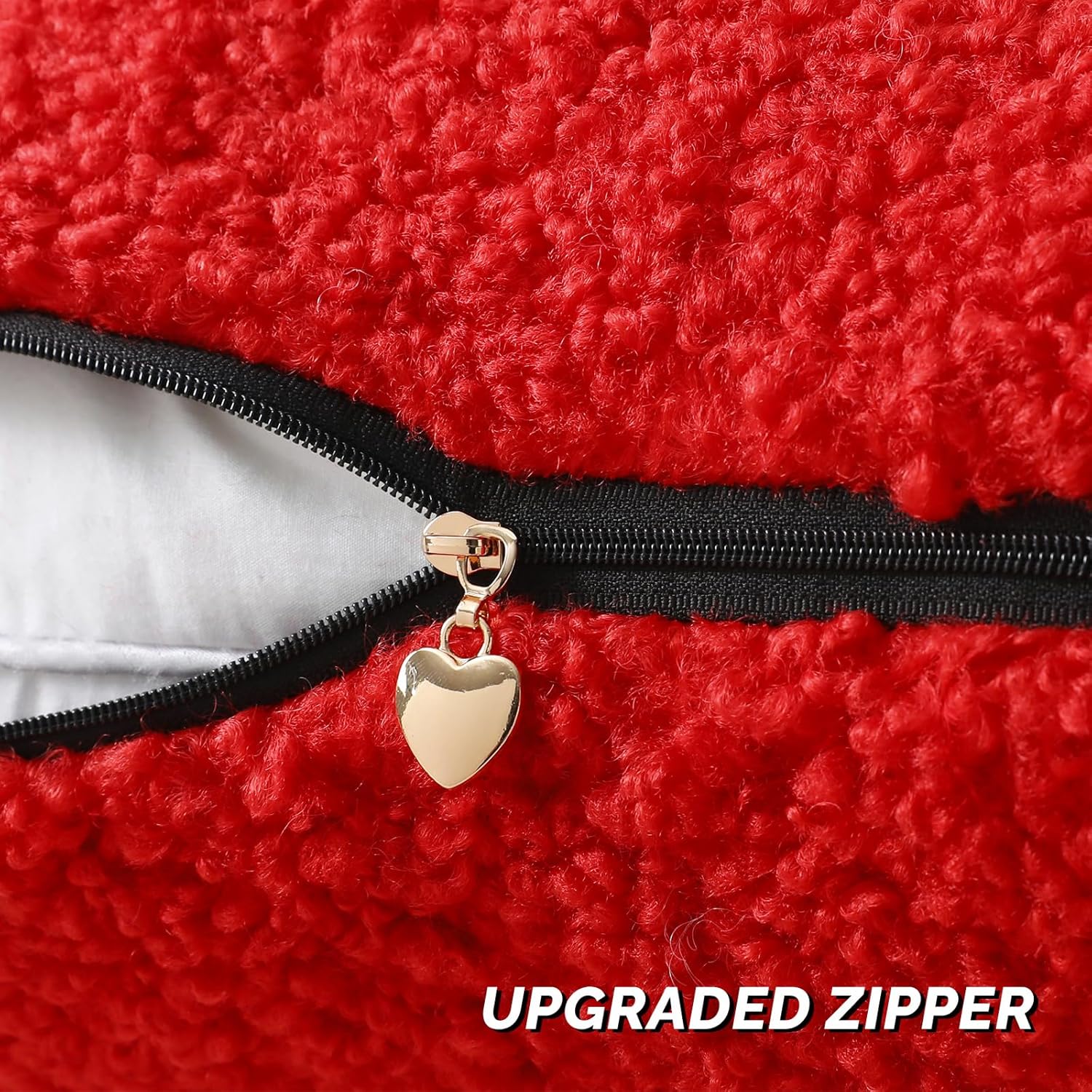 FUTEI Red Throw Pillow Covers 18x18 Inch Set of 2,Furry Faux Fur Teddy Boucle Textured Cushion Covers,Soft Fluffy Decorative Pillow Case,Home Decor for Couch Bed Living Room Office Car
