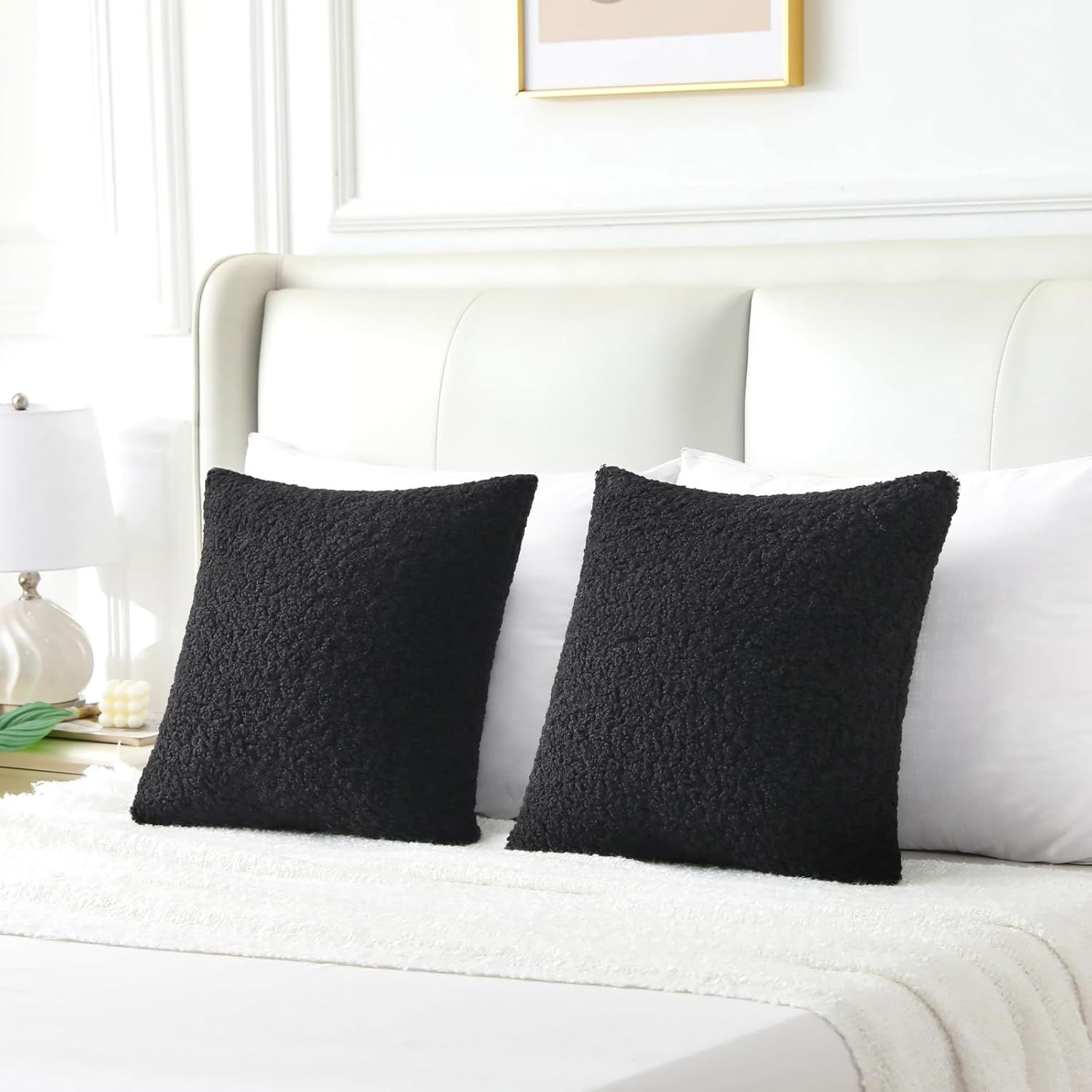 FUTEI Black Throw Pillow Covers 20x20 Inch Set of 2,Furry Faux Fur Teddy Boucle Textured Cushion Covers,Soft Fluffy Decorative Pillow Case,Home Decor for Couch Bed Living Room Office Car
