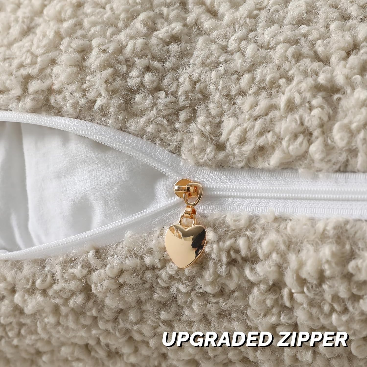 FUTEI Beige Throw Pillow Covers 18x18 Inch Set of 2,Furry Faux Fur Teddy Boucle Textured Cushion Covers,Soft Fluffy Decorative Pillow Case,Home Decor for Couch Bed Living Room Office Car