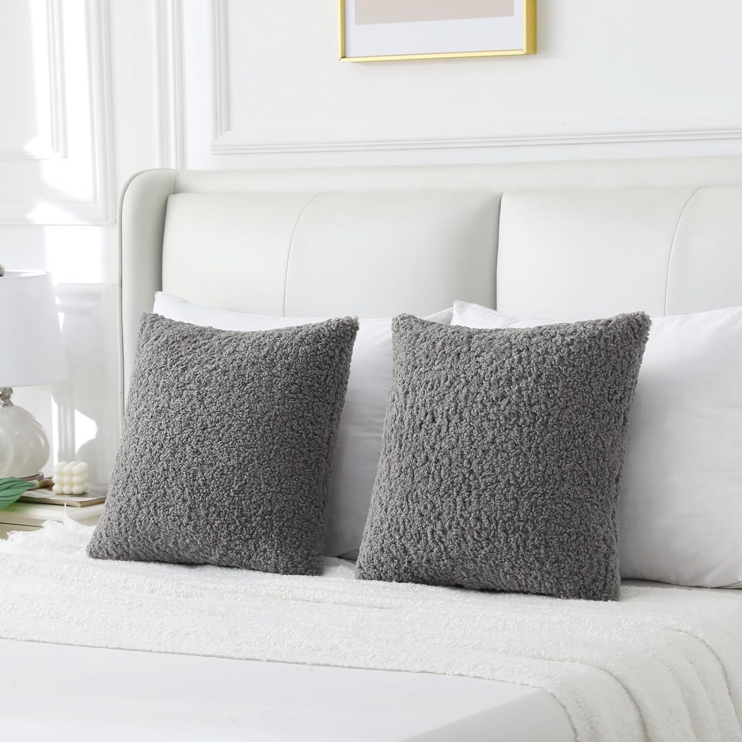FUTEI Dark Grey Throw Pillow Covers 16x16 Inch Set of 2,Furry Faux Fur Teddy Boucle Textured Cushion Covers,Soft Fluffy Decorative Pillow Case,Home Decor for Couch Bed Living Room Office Car