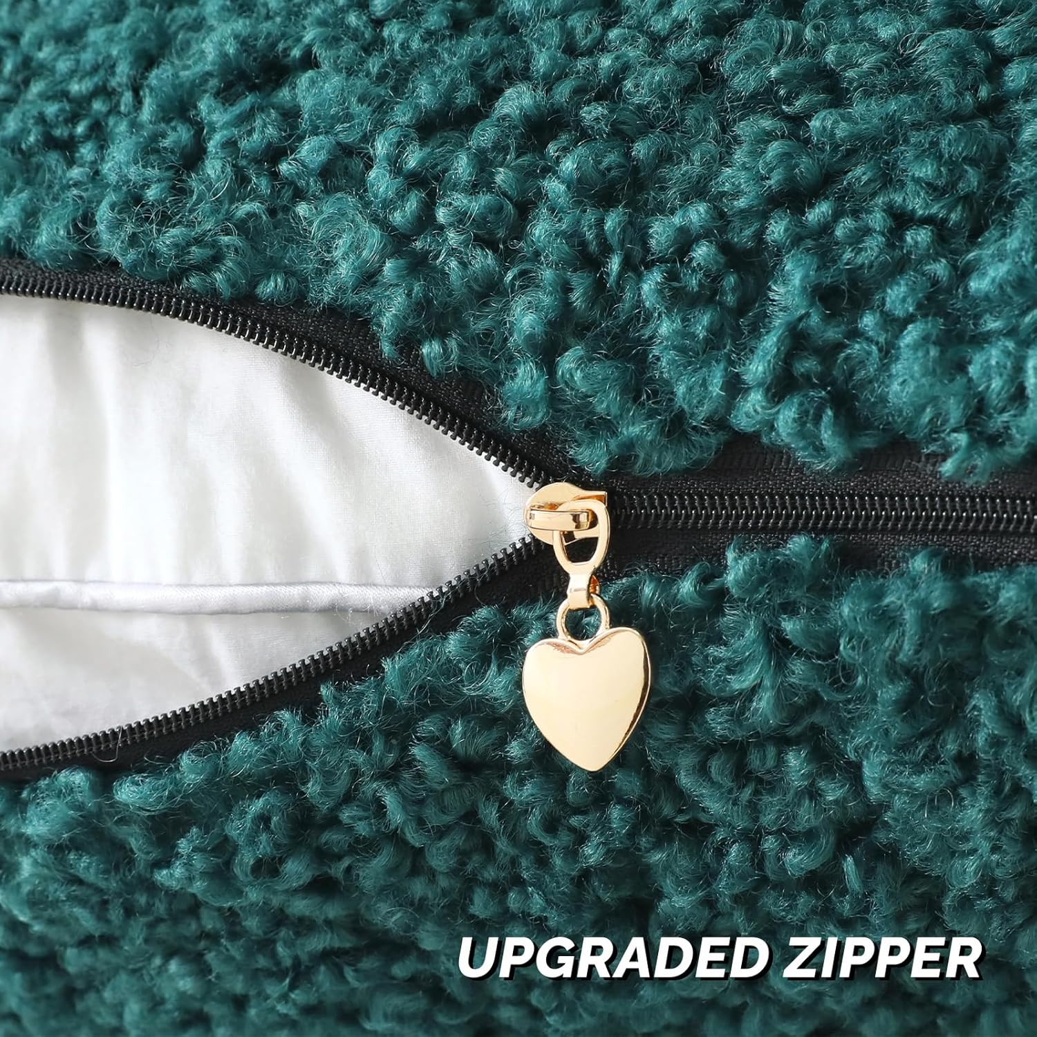 FUTEI Dark Green Throw Pillow Covers 18x18 Inch Set of 2,Furry Faux Fur Teddy Boucle Textured Cushion Covers,Soft Fluffy Decorative Pillow Case,Home Decor for Couch Bed Living Room Office Car