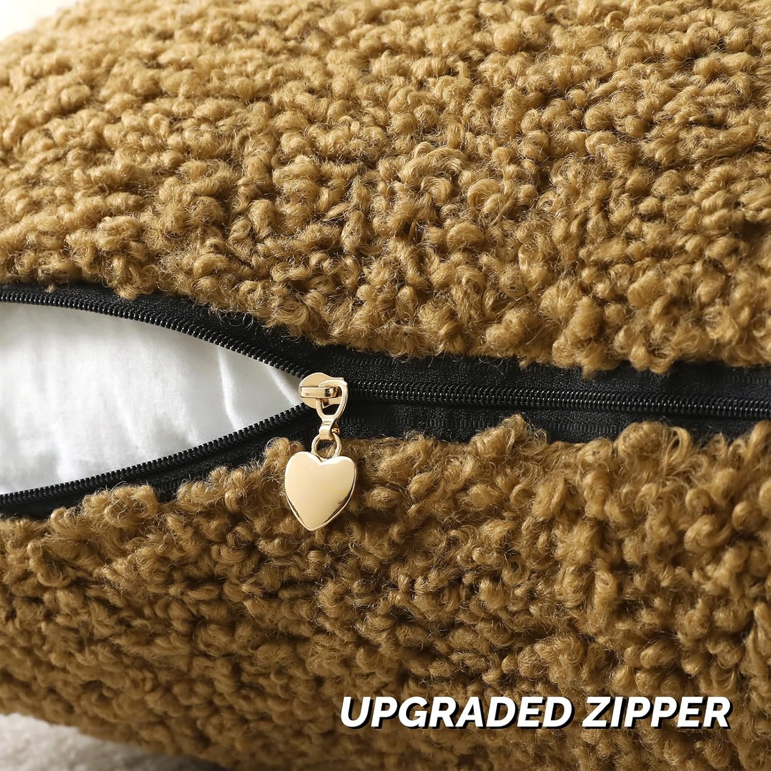 FUTEI Khaki Throw Pillow Covers 18x18 Inch Set of 2,Furry Faux Fur Teddy Boucle Textured Cushion Covers,Soft Fluffy Decorative Pillow Case,Home Decor for Couch Bed Living Room Office Car