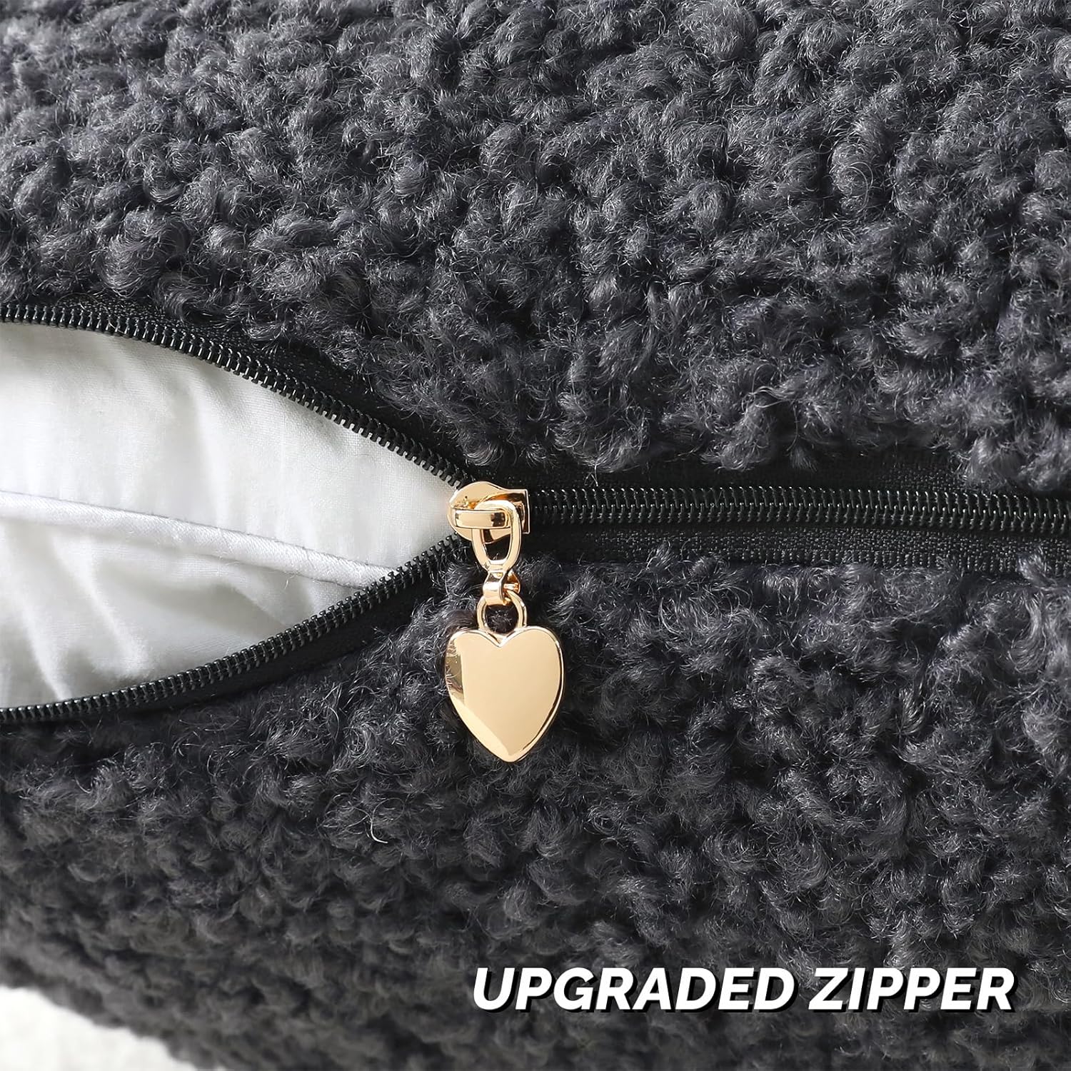 FUTEI Charcoal Throw Pillow Covers 24x24 Inch Set of 2,Furry Faux Fur Teddy Boucle Textured Cushion Covers,Soft Fluffy European Pillow Shams,Home Decor for Couch Bed Living Room Office Car