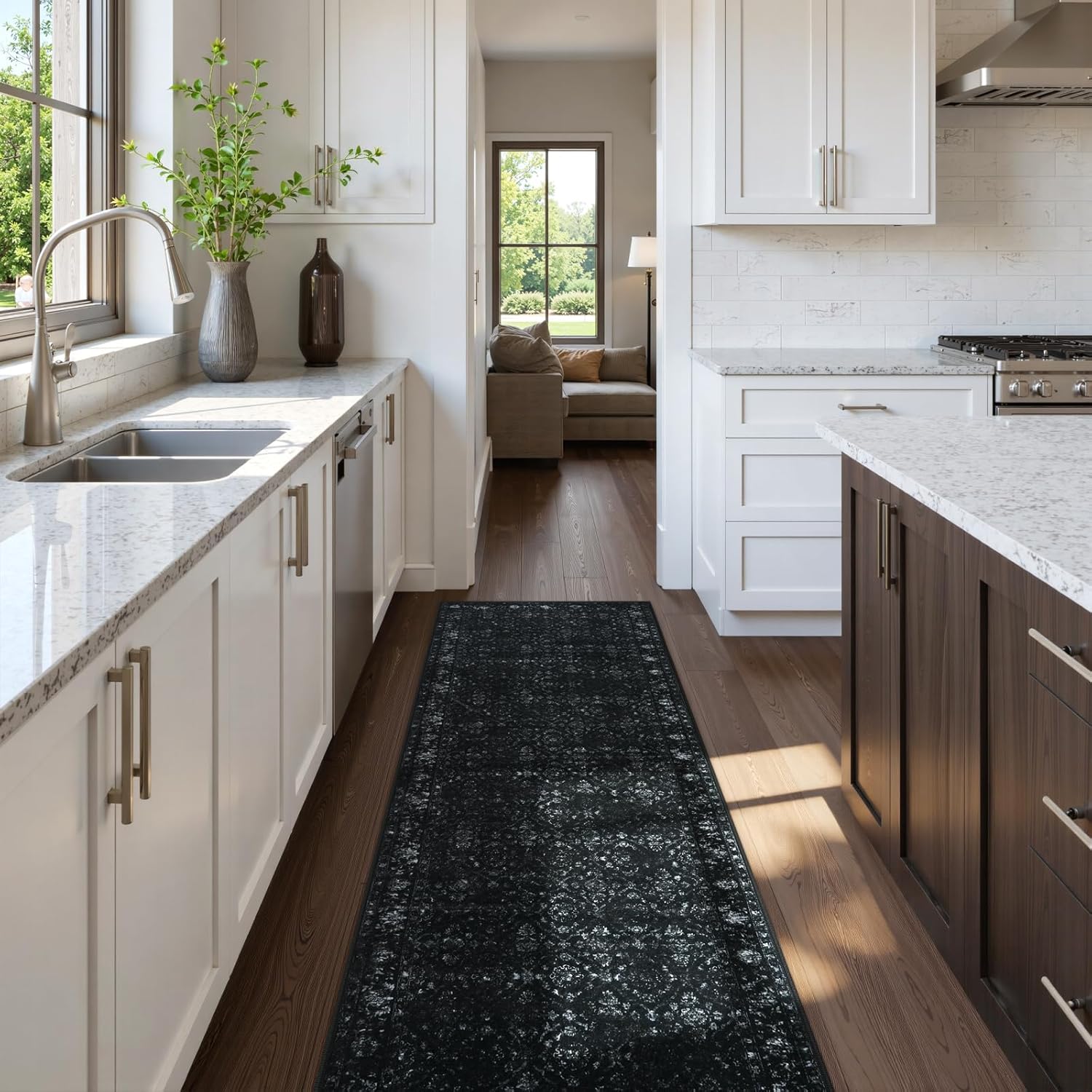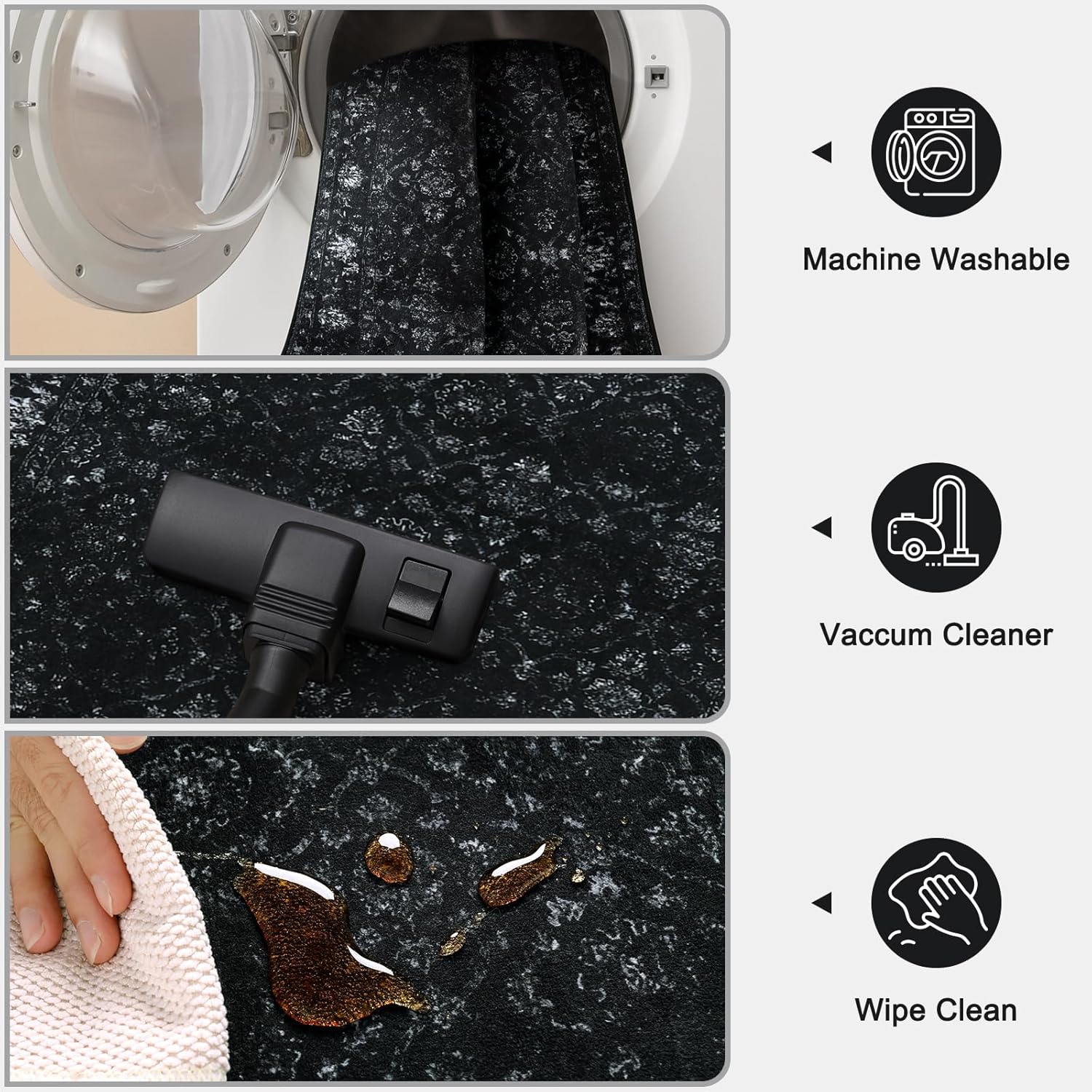 - Machine Washable: This black runner rug for hallway is easy to clean and machine washable, saving you time! Our washable runner is easy to throw in the wash for cleaning whenever needed. Perfect for family parties, kids and pets playing