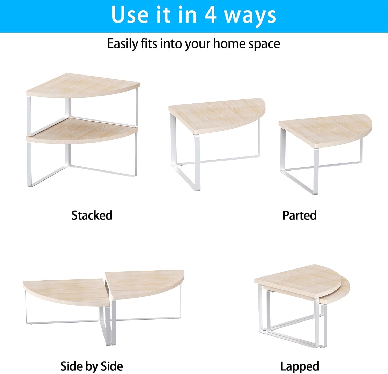 Corner Shelf Countertop Organizer - Set of 2 Corner Shelves for Kitchen Cabinet Organizer, Spice Rack, Stackable Bathroom Stand and Storage, Sink Rack, Corner Cabinet, Counter Decor, Natural Beige