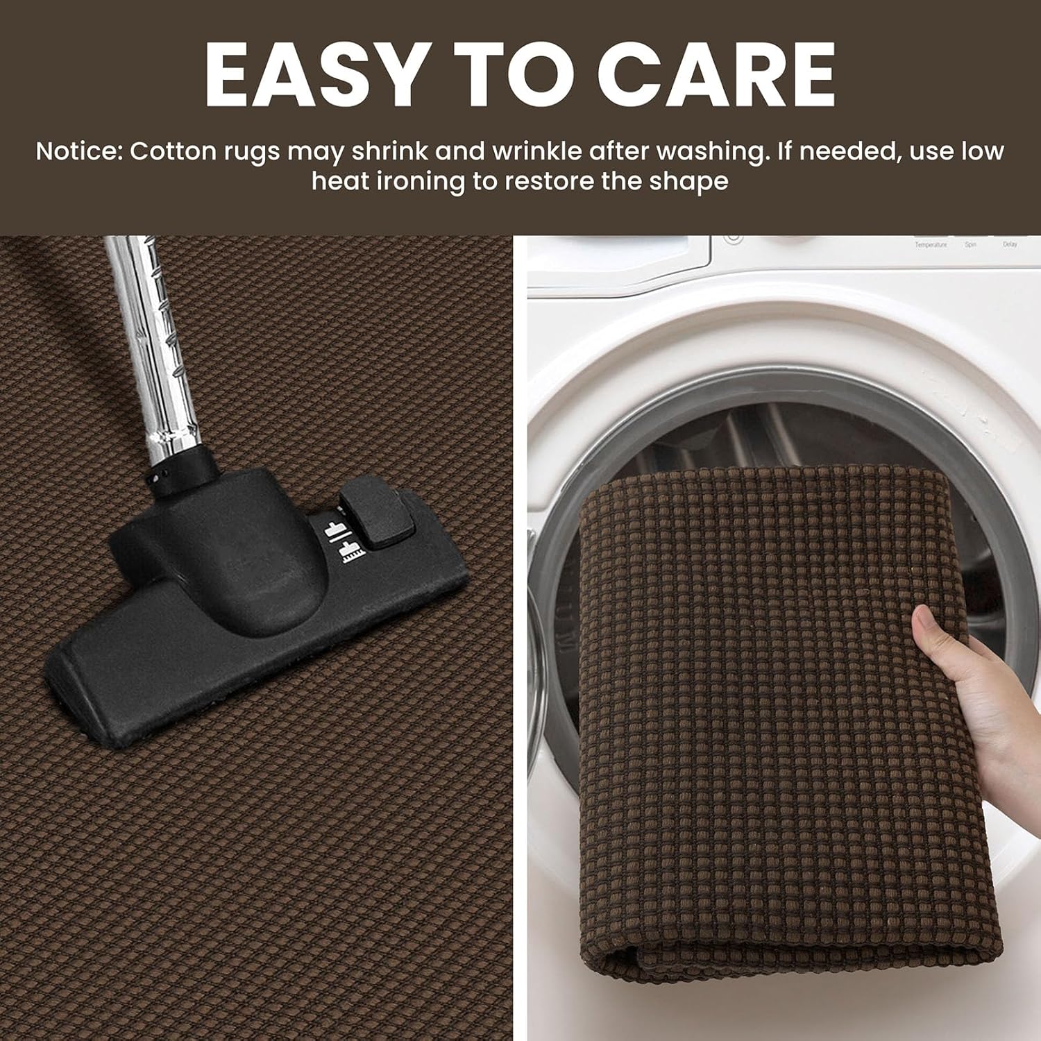 - Machine Washable: Crafted from premium cotton-linen blend, this rug is soft to the touch and machine washable. Light creases from folding or washing can be easily removed by low-temperature tumble drying or ironing. Note: Slight shrinkage after washing is normal
