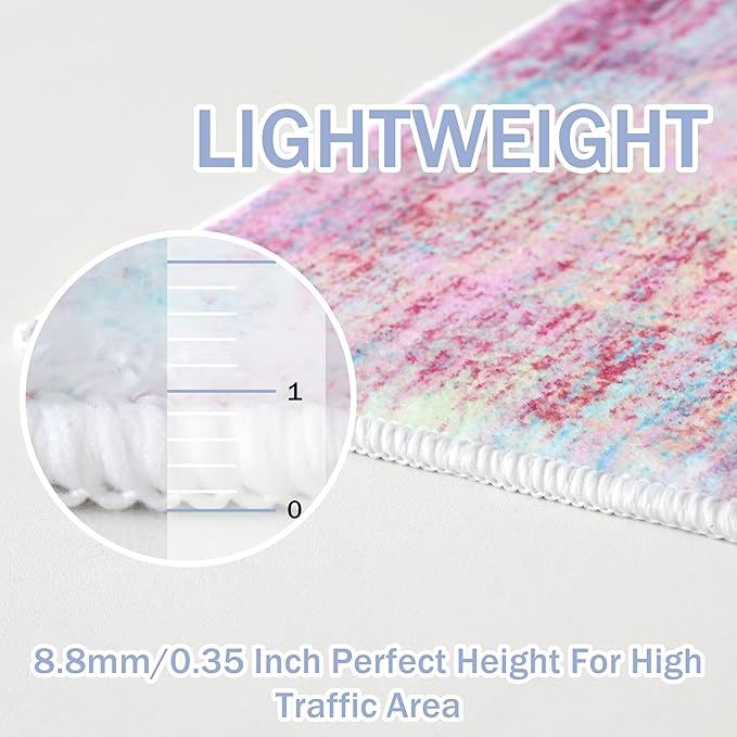 - Key Attribute: Size: 3' x 10'(36"x120"); Style: Printed Abstract Modern; Thickness: 0.35 in.; Color: Pink/Teal/Yellow. Note: Due to differences in computer monitors, the rug colors may vary slightly