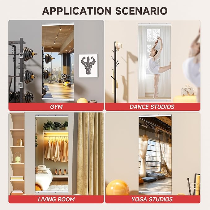 - WIDE APPLICATION: These large full-length mirrors can be installed in home gyms, garages, bedrooms, bathrooms, and are a must-have for fitness, dance, and yoga