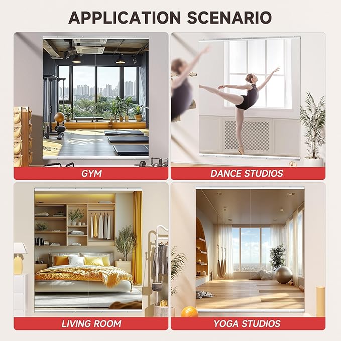 - WIDE APPLICATION: These large full-length mirrors can be installed in home gyms, garages, bedrooms, bathrooms, and are a must-have for fitness, dance, and yoga