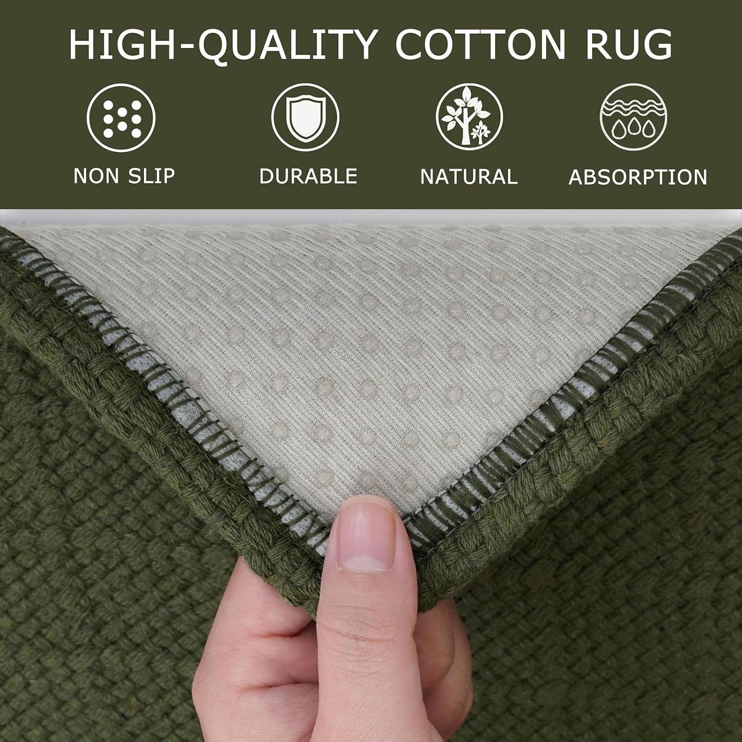 KOZYFLY Runner Rug 2x12 Ft Washable Runners for Hallways Non Slip Rubber Backed Kitchen Runners, Braided Cotton Entryway Runner Indoor, Floor Carpet for Hallway Kitchen Entryway, Dark Green