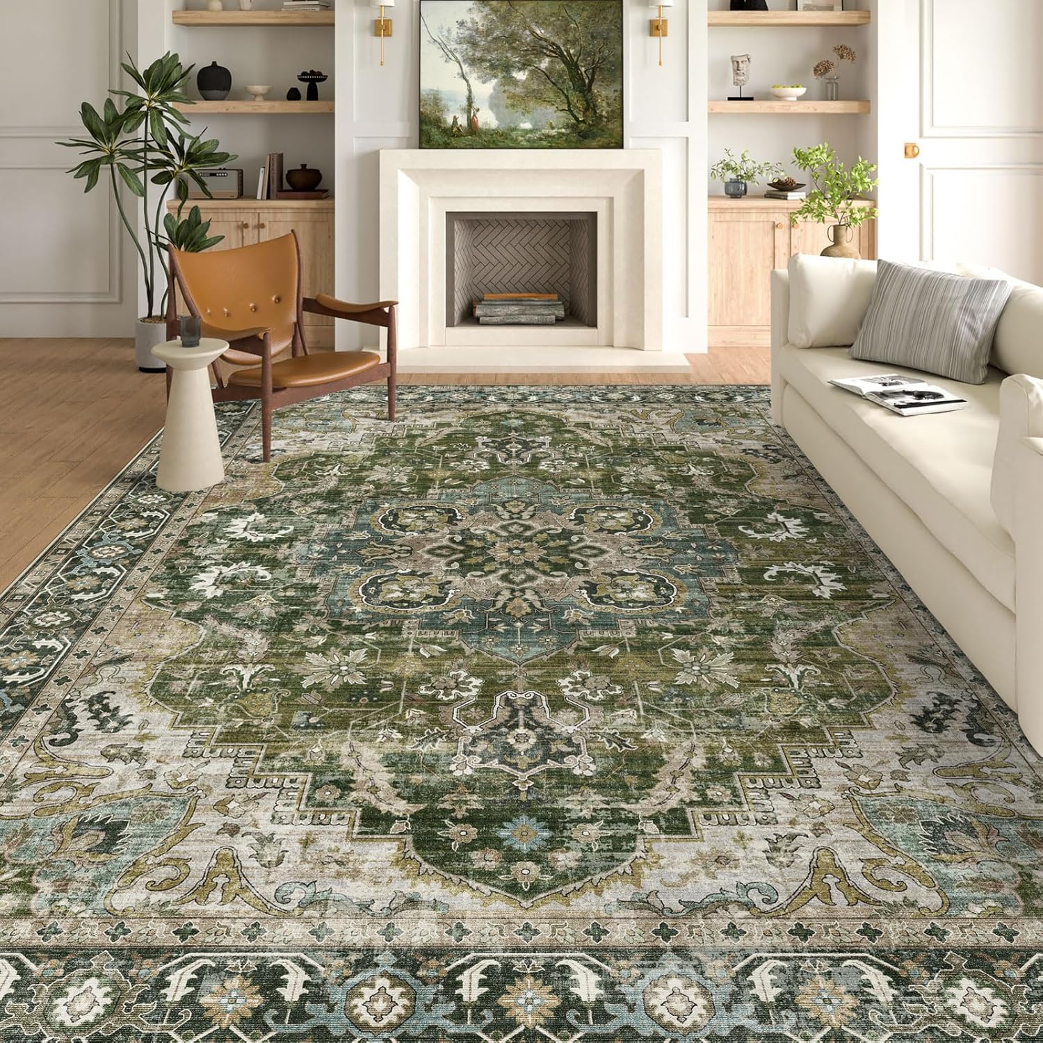 - Stylish Design: Our exquisite printed distressed rug features vintage patternsthat elegantly decorate your home. This retro rug blends stylish design with modern functionality, incorporates accents of deep forest green, muted teal, beige and taupe, adding a touch of rustic and classic charm to any space. They protect your floors, provide a soft, comfortable feeling underfoot, and serveas stunning focal points in your home decor