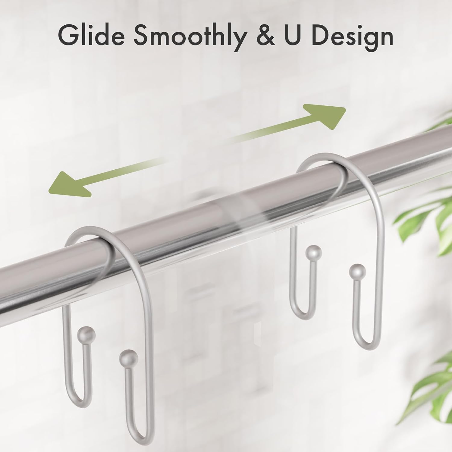 - Unique design: These shower curtain hooks feature a unique double-hook design, allowing you to hang both the curtain and liner simultaneously. The inward-bending hooks provide extra security, preventing the curtain from sliding off