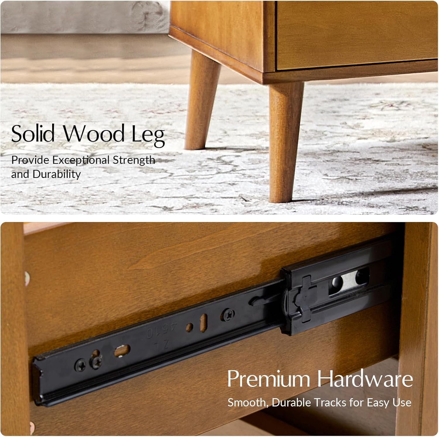 - Mid-Century Modern Design: Featuring a sleek silhouette and minimalist style, this nightstand blends retro-inspired aesthetics with contemporary functionality, adding sophistication to your bedroom decor.