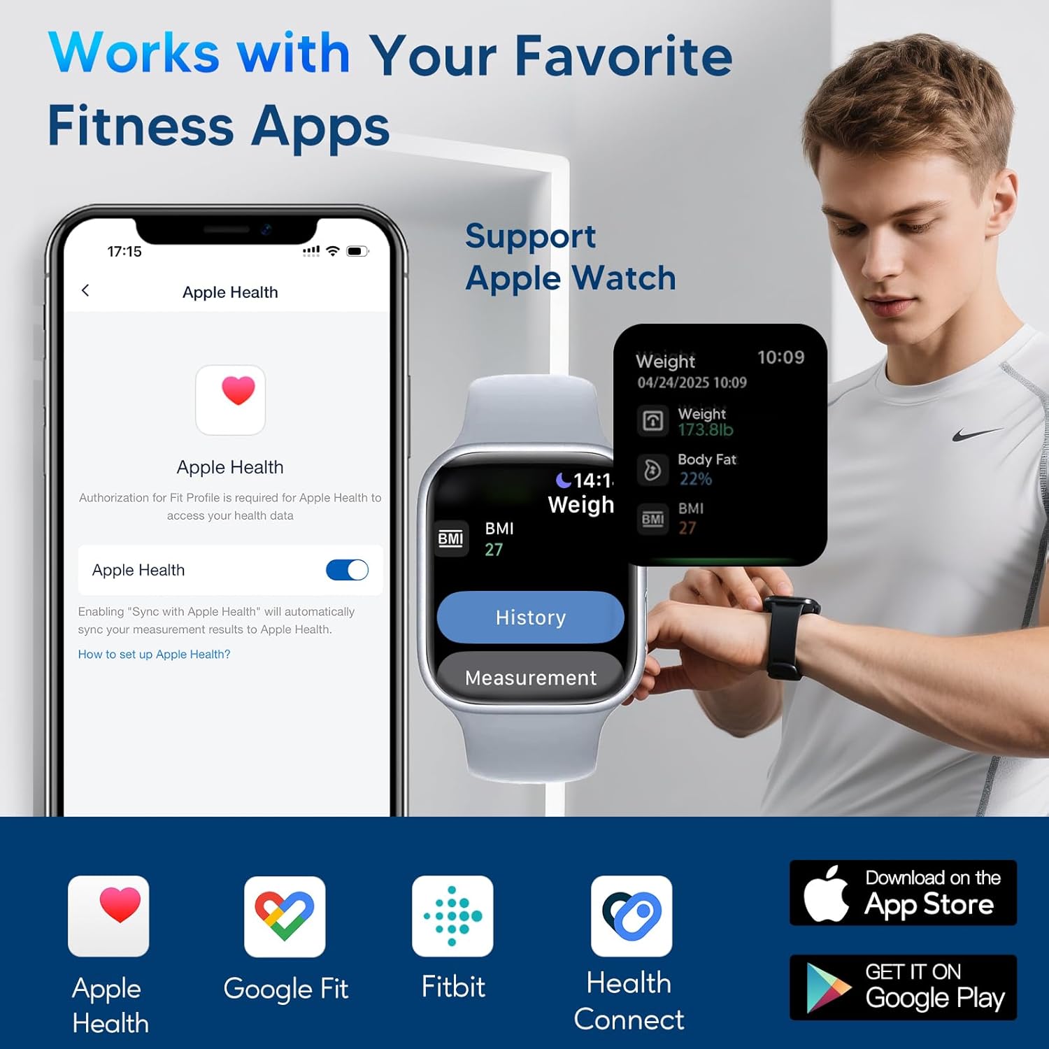- Smart & User-Friendly App: Easily track all your body metrics with intuitive trend charts showing your progress over time. The app seamlessly syncs key health data with Apple Health, Google Fit, Fitbit and Health Connect. Share your fitness achievements on social platforms to stay motivated and celebrate milestones with friends