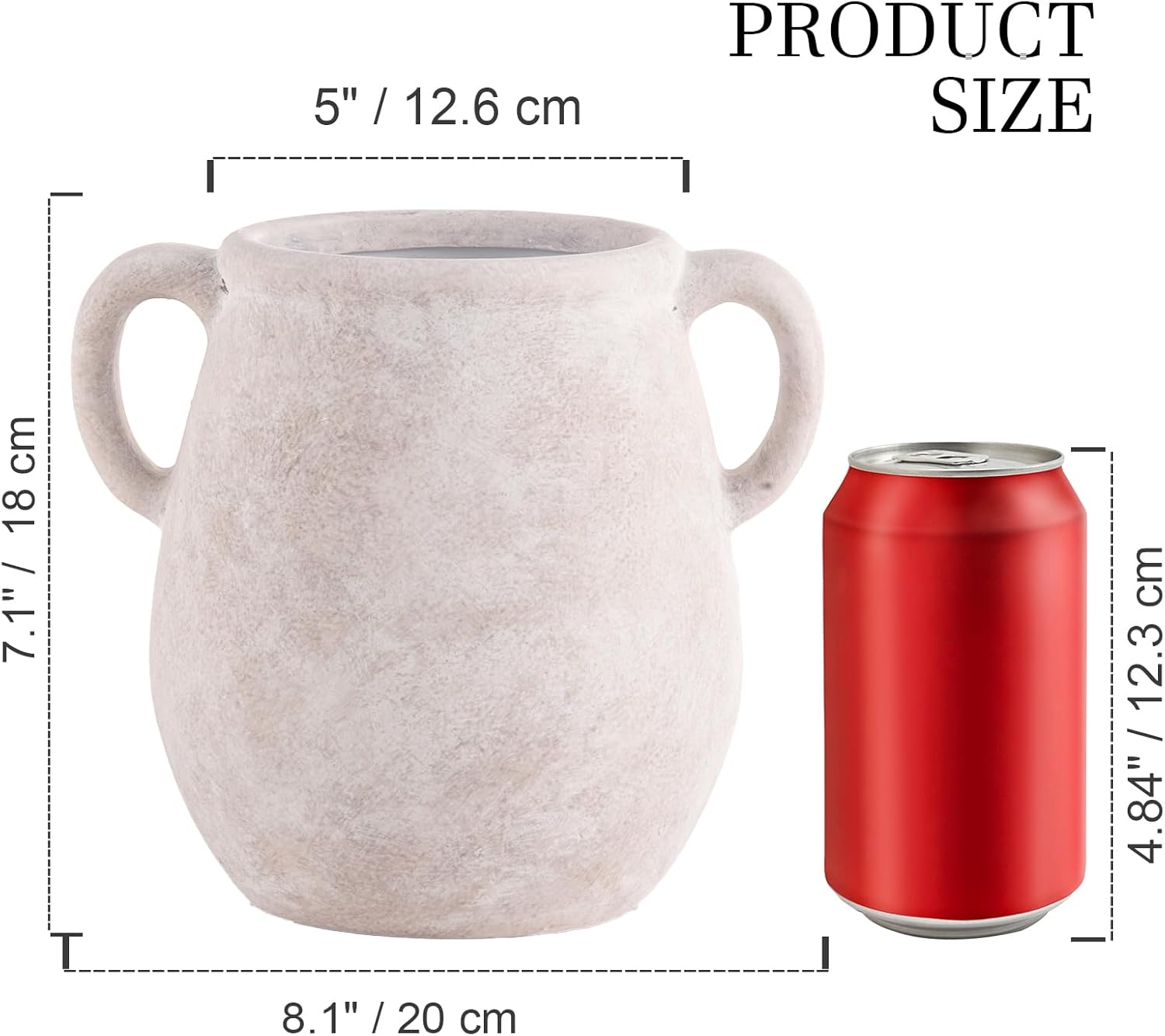 - 【Handcrafted Weathered】The exterior of white ceramic flower vase was painted by hand in a modern yet rustic glaze, nice color that goes with any color decor.It effortlessly blends in with existing furniture and accessories, adding a timeless charm and harmonious look to your space.(Warm Tips: The surface effect is purely handmade, and each product is not exactly the same.)