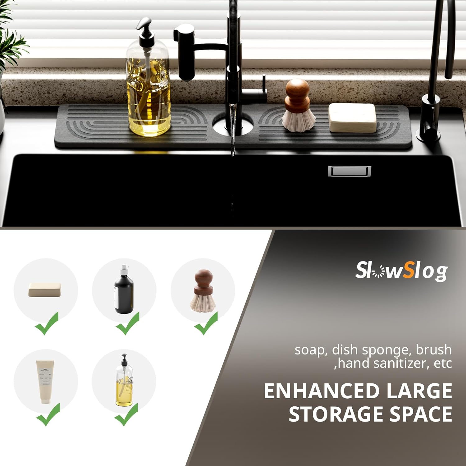 - Premium Material: Crafted from natural diatomite mud, this sink guard effectively absorbs moisture while remaining odorless. It helps prevent water splashes and reduces countertop moisture buildup. Note: Avoid direct placement on countertops with connecting tubes