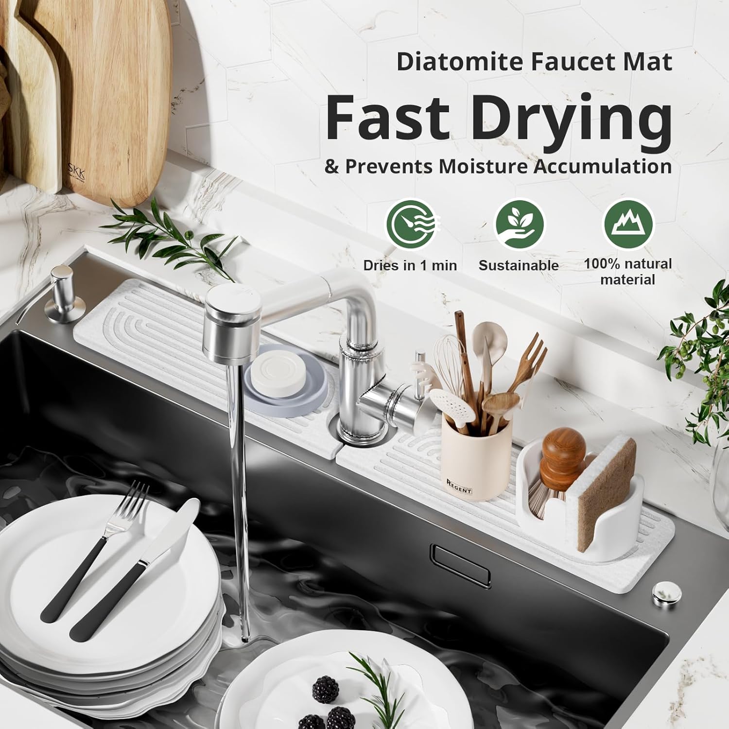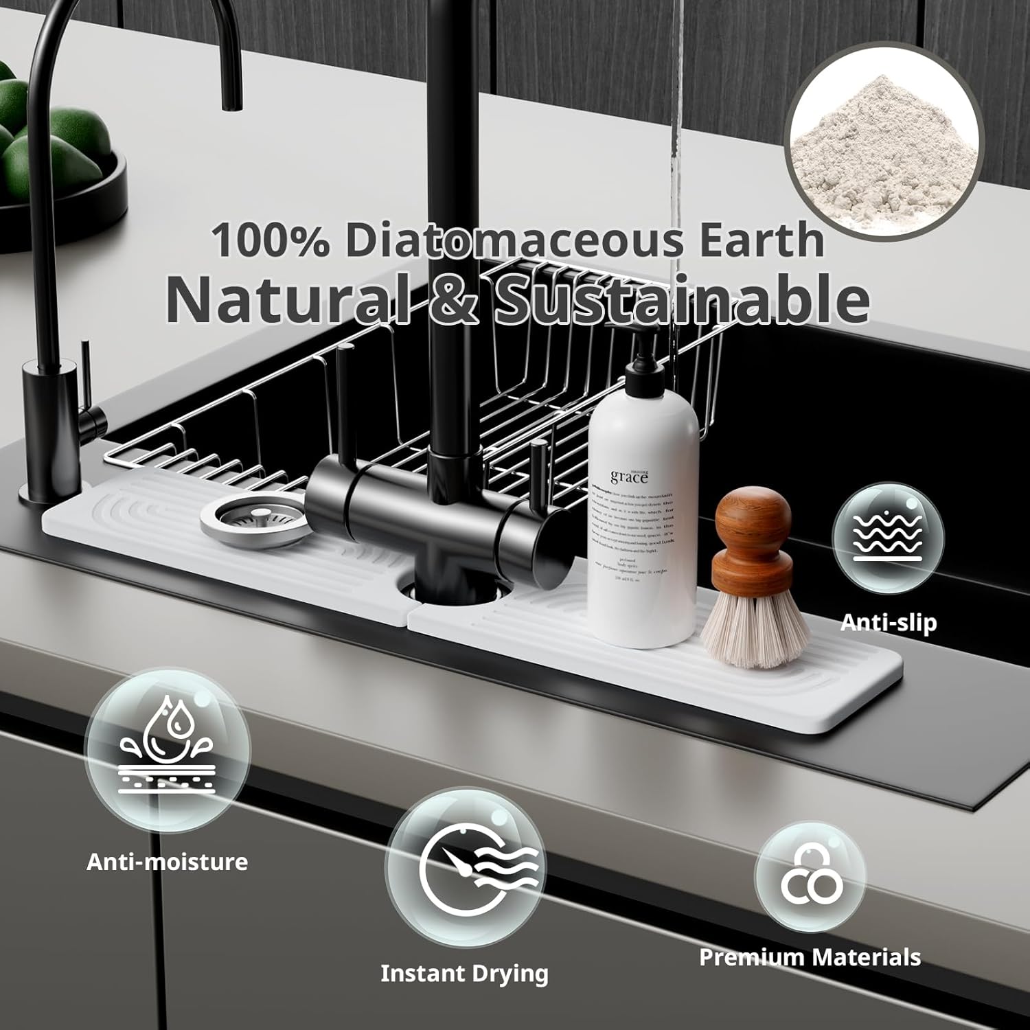- Premium Material: Crafted from natural diatomite mud, this sink guard effectively absorbs moisture while remaining odorless. It helps prevent water splashes and reduces countertop moisture buildup. Note: Avoid direct placement on countertops with connecting tubes