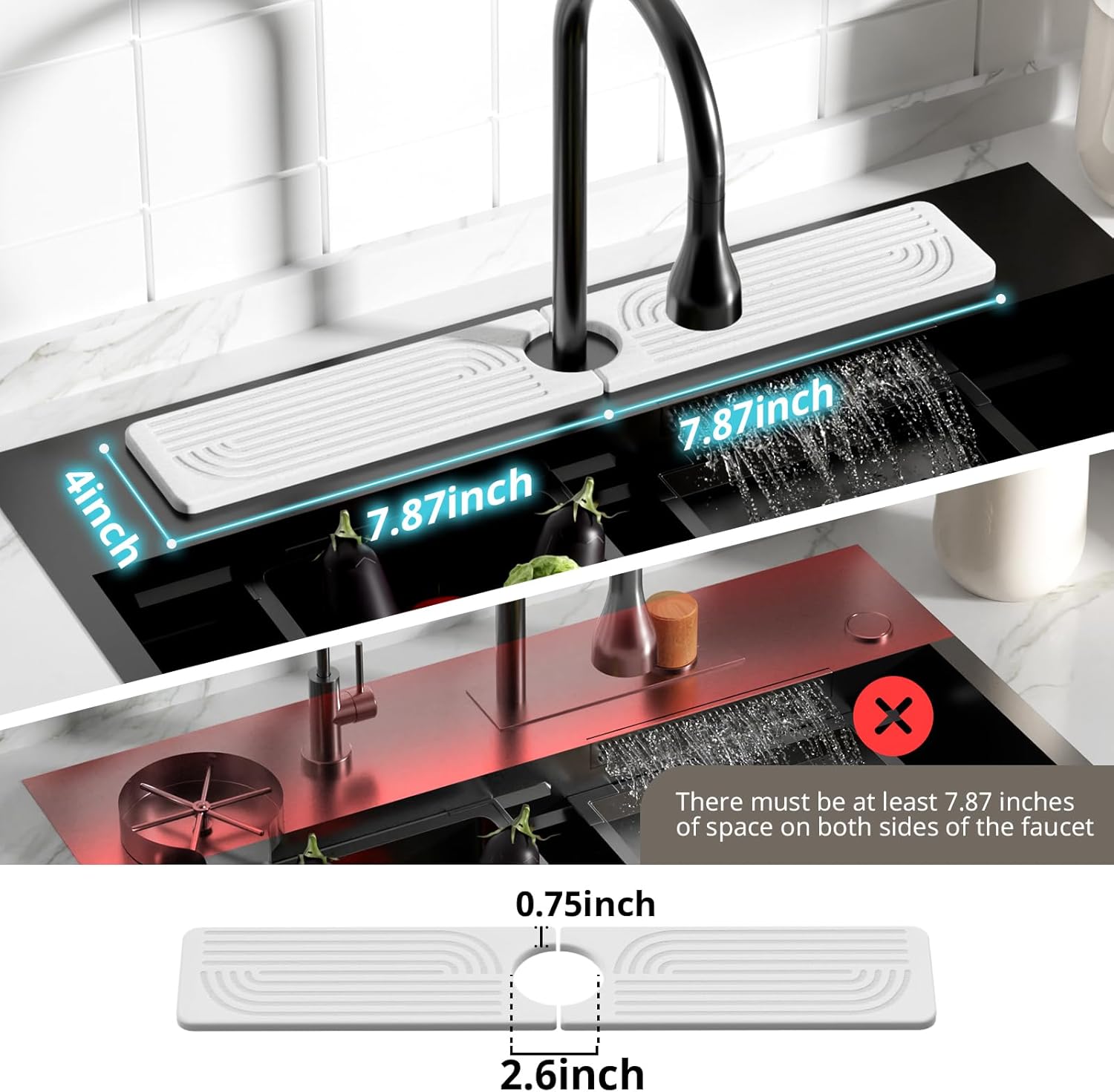 - Size Guidance: Accurately measure the available space around your faucet before selection. This product line requires minimum 7.87 inches of clearance. The 15.8 x 4 inch size fits spaces from 7.87 to 11.8 inches. The 23.6 x 4 inch size accommodates 11.8 to 15 inch areas. Spaces exceeding 15 inches require the 30 x 4 inch size