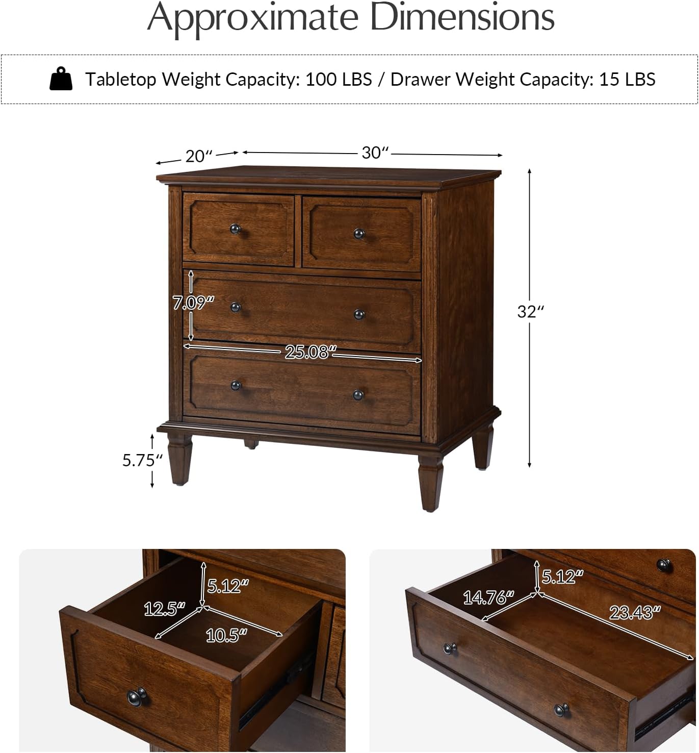 - Size : 20"D x 30"W x 32"H (4 Drawers)
