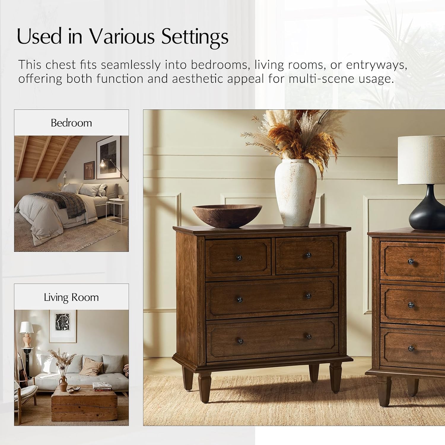 - Four Spacious Drawers: Featuring deep, full-length drawers, this chest offers ample storage for paperwork, accessories, and essentials, helping keep your space tidy and organized.