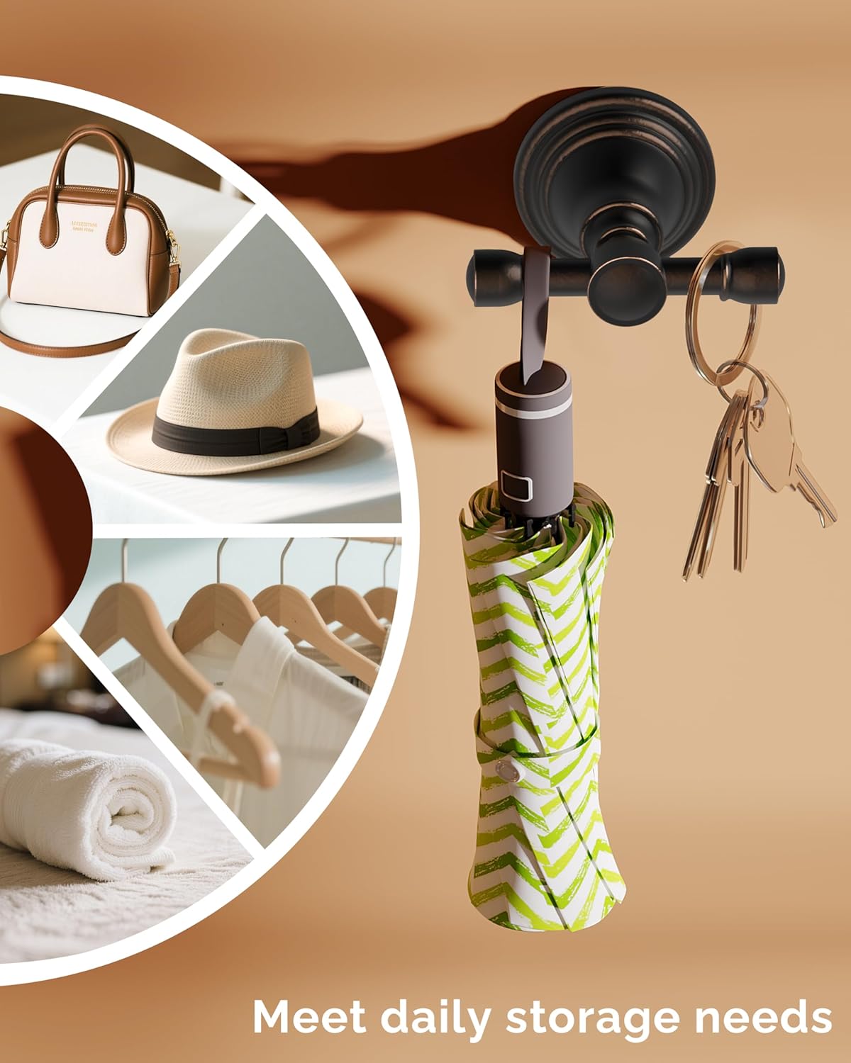 - [Multi Scenario Applicability] Our towel hooks for wall can meet different daily needs, including hanging hand towels, hats, bathrobes, sponges, brushes, etc. Hand towel hook is not only used in the bathroom but also in various scenarios such as the kitchen, bedroom, RV, etc
