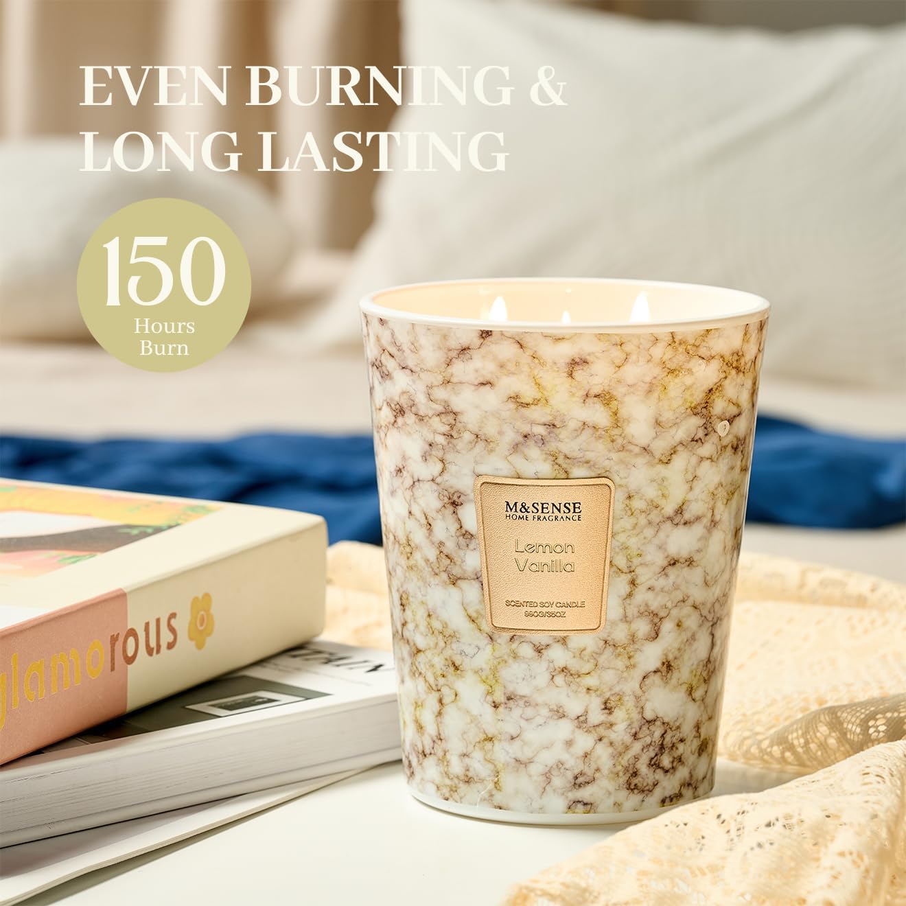 M&SENSE Sugared Lemon Zest Scented Candles for Home, 3-Wick Highly Scented Jar Candles, Extra Large Candle 35 Oz 150 Hours Long Lasting Burning, Relaxing Aromatherapy Candle for Stress Relief