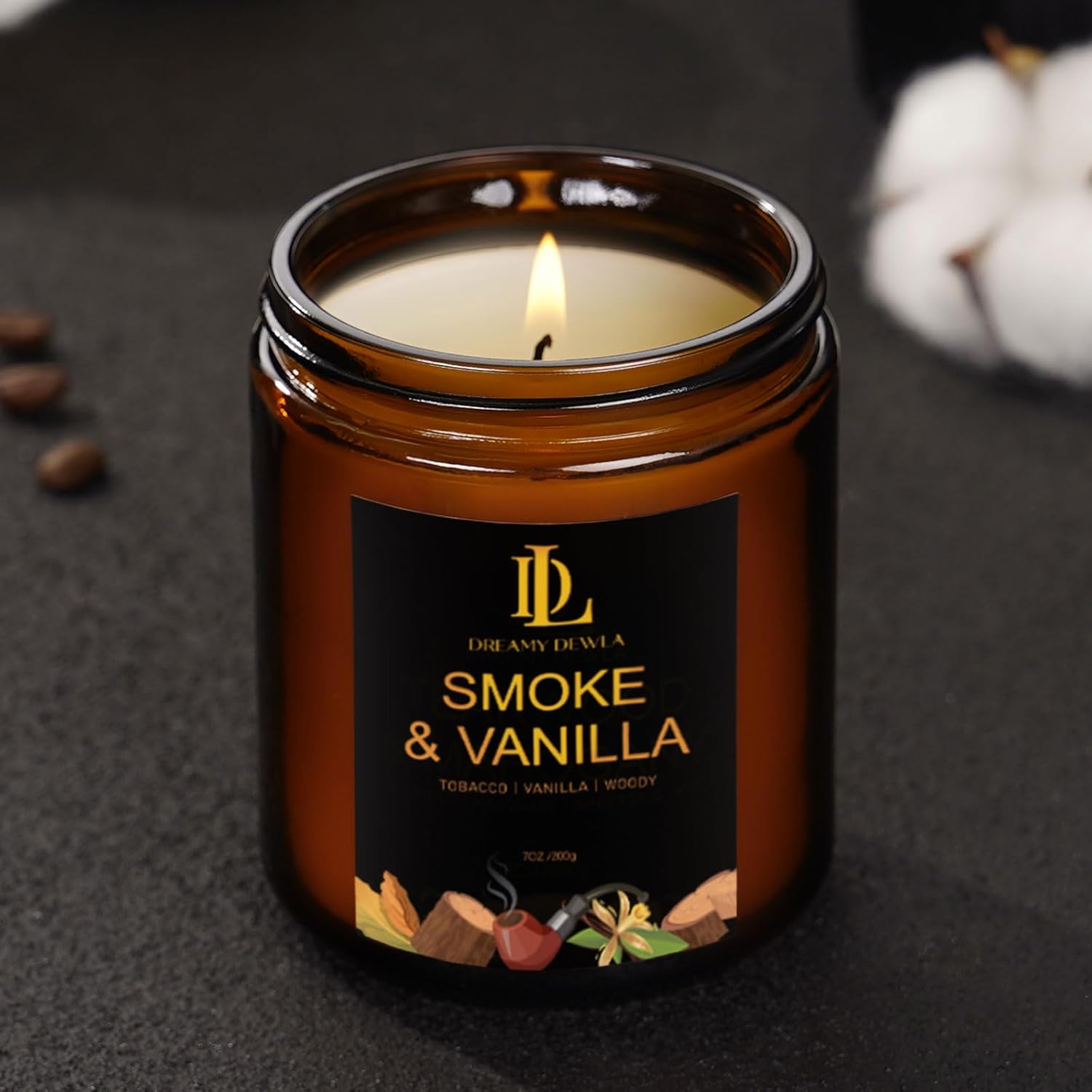 Smoke & Vanilla Candles, Smoke Vanilla Scented Candle, Natural Soy Candles for Home Scented, Long Lasting with 50 Hour Burn Time, Gifts for Men Women