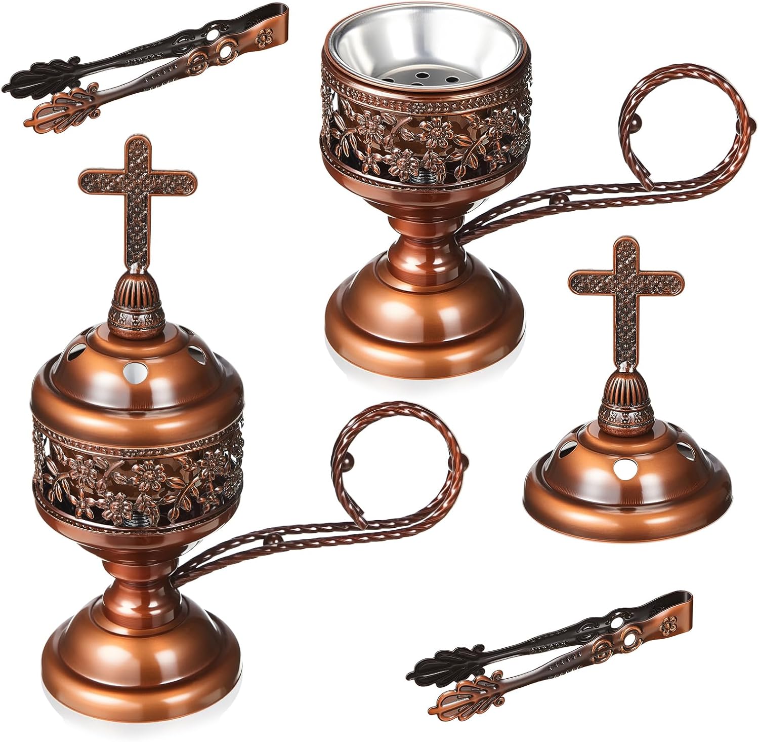 - Exquisite Workmanship: this retro inspired incense burner is a masterpiece of refinement; Its red copper appearance glows in the sunlight, while the cross motif at the top symbolizes Christ and faith; The intricate flowers on its sides contain ingenuity, and they turn it into a beautiful ornament