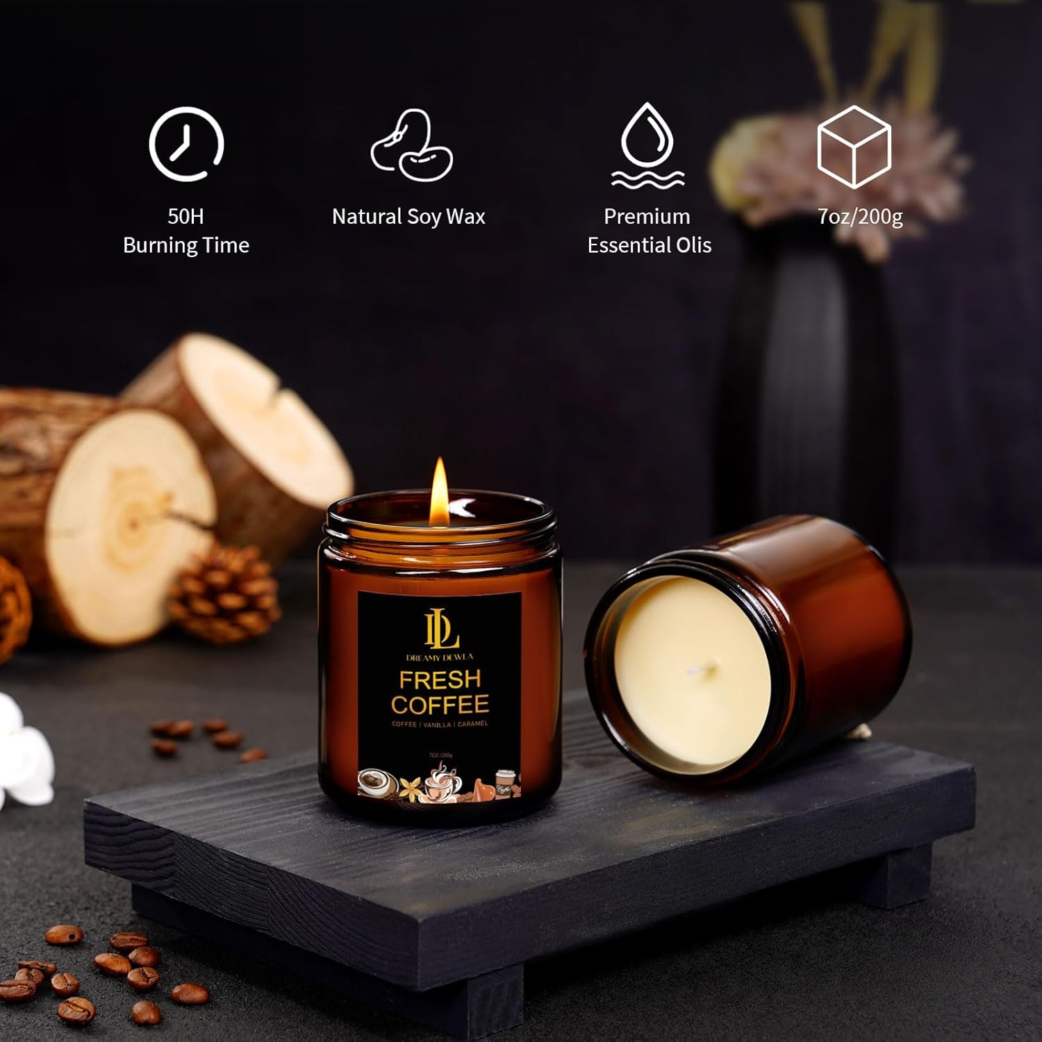 Fresh Coffee Candles, Coffee Scented Candle, Natural Soy Candles for Home Scented, Long Lasting with 50 Hour Burn Time, Gifts for Men Women