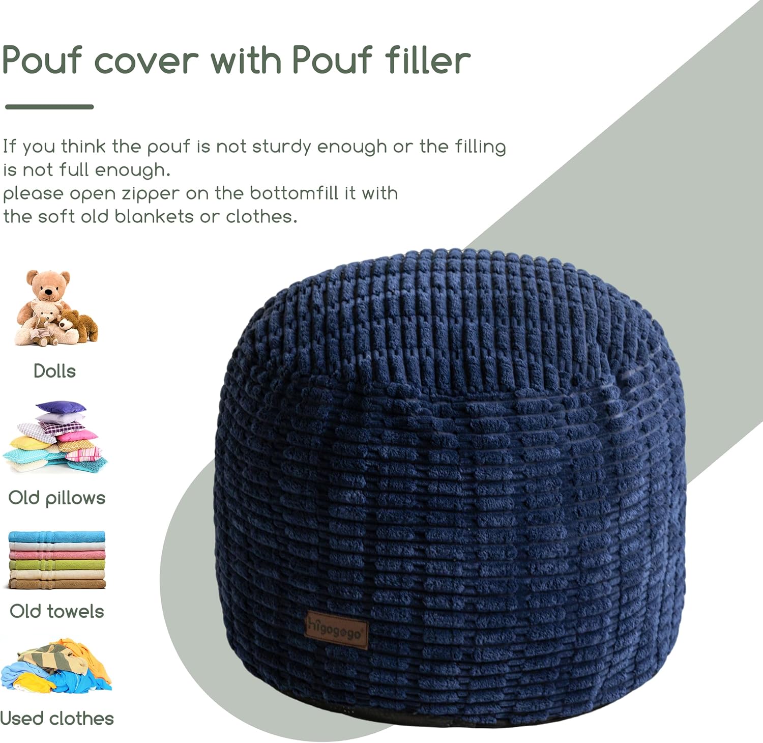 - Extremely Comfortable Pouf Ottoman Stuffed: This pouf ottoman cover adopts plush fiber with thick backing,fluffy and durable, holds its shape perfectly,gives a softest feeling for your feet with our fluffy ottoman foot rest.