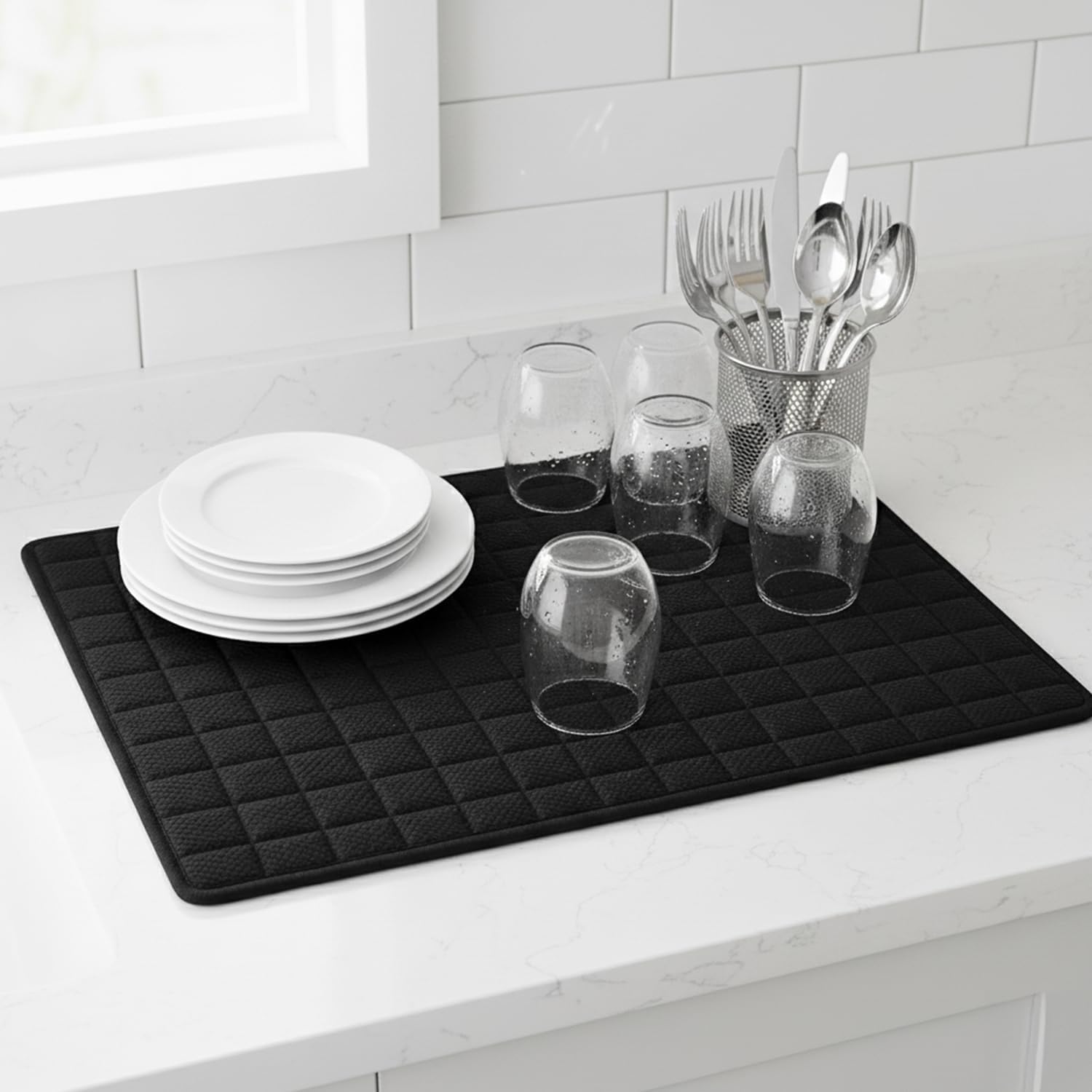 Dish Drying Mat 15"x20" – Ultra Absorbent Microfiber Kitchen Counter Mat, Fast-Dry Dish Pad for Dishes, dish drying mats for kitchen counter, Soft & Durable (Black, Large)
