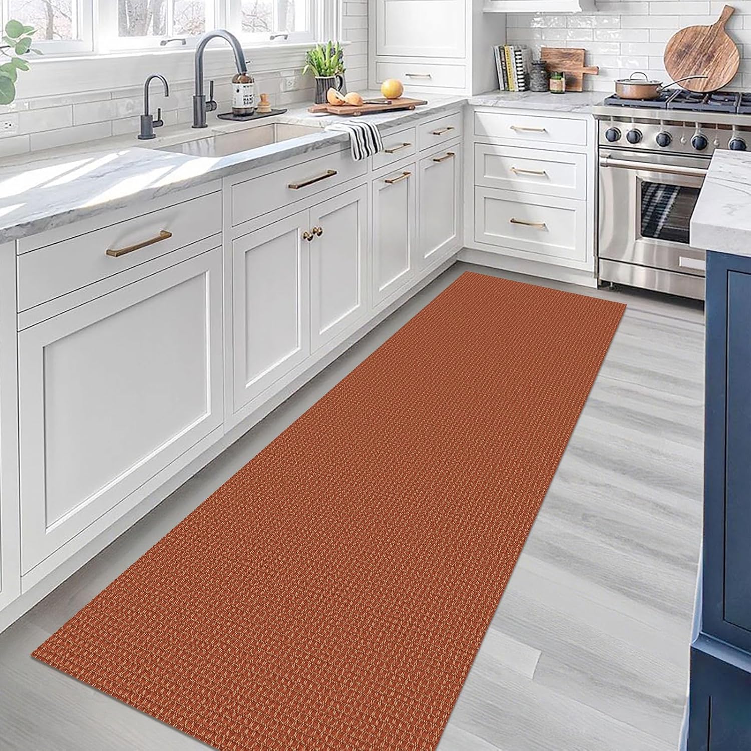 KOZYFLY Runners for Hallways 2x7 ft Washable Kitchen Runner Non Slip Rubber Backed Hall Runners Cotton Entryway Runner Rugs Floor Carpet for Indoor Backdoor Bedroom Kitchen, Orange/Tan