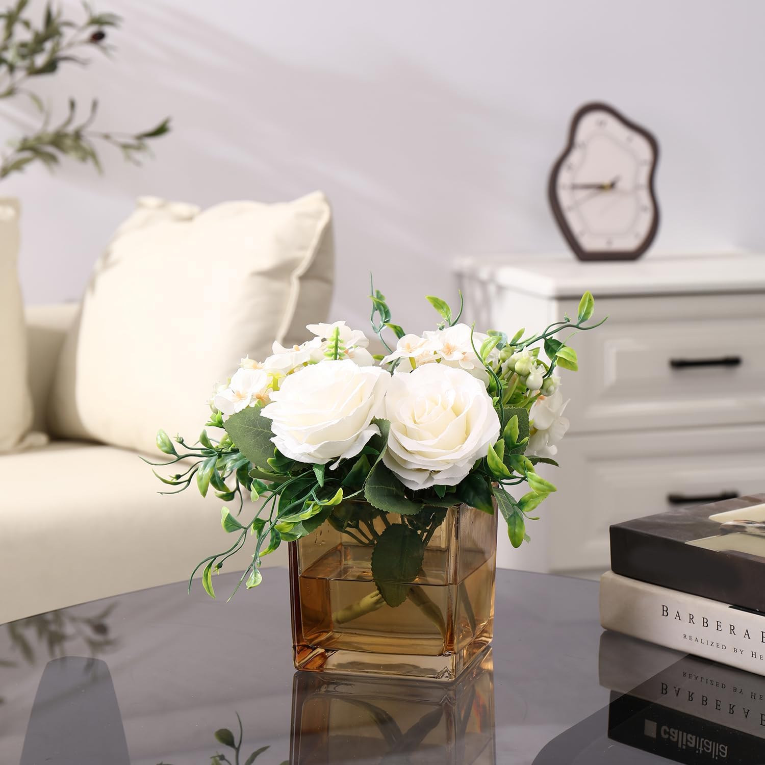 Square Amber Glass Vases Set of 2, 6" x 6" x 6" Square Vase for Centerpieces, Flower Vases for Centerpieces, Small Vase for Wedding, Party, Home Office Decoration