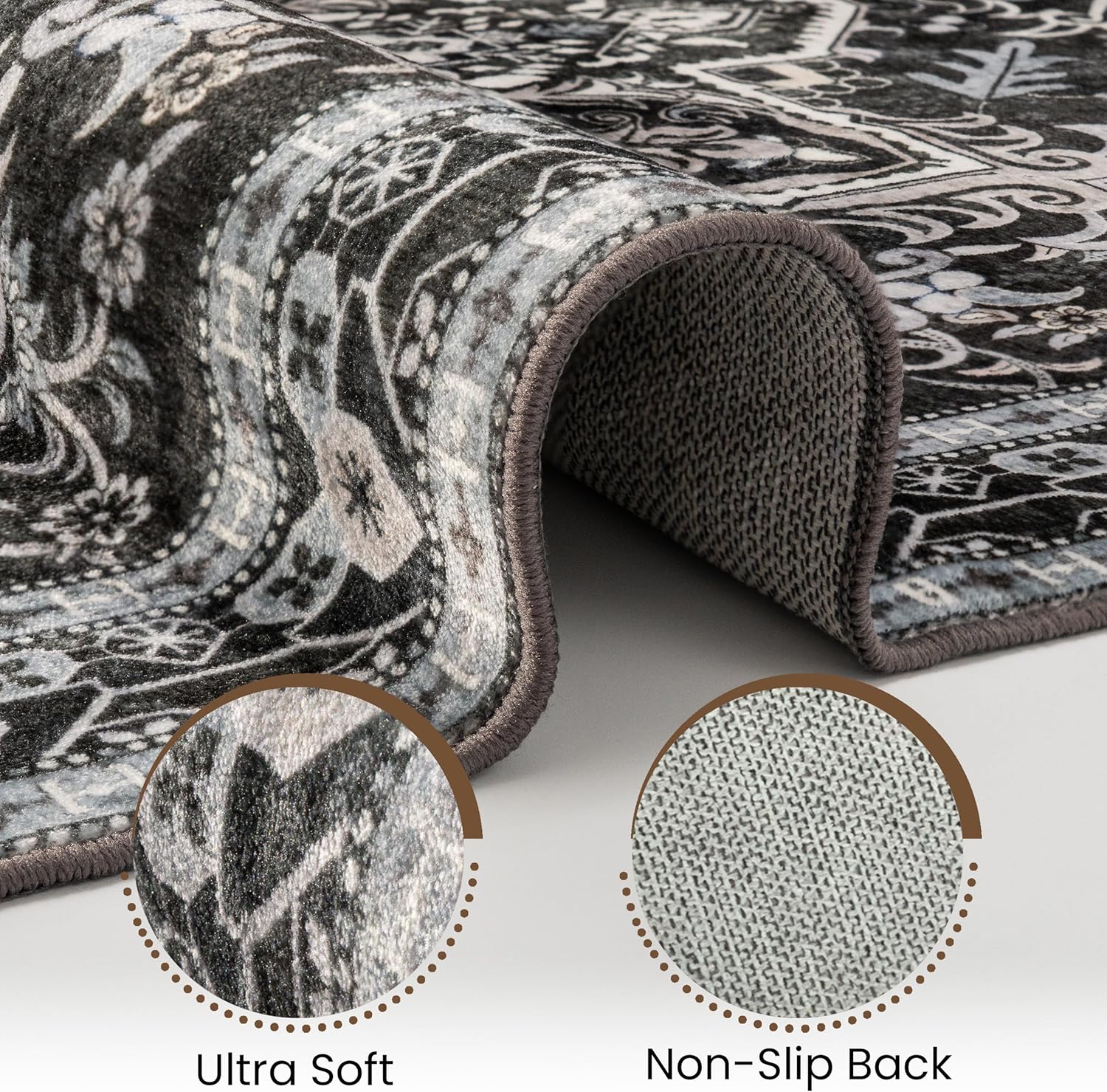 Washable Runner Rug 2.5x8 | Non Slip Rug Runners for Hallways, Entryways, Kitchens, Bathrooms, Bedrooms | Ultra-Soft Flannel Carpet Runners with Rubber Backing (Charcoal, 2.5x8)